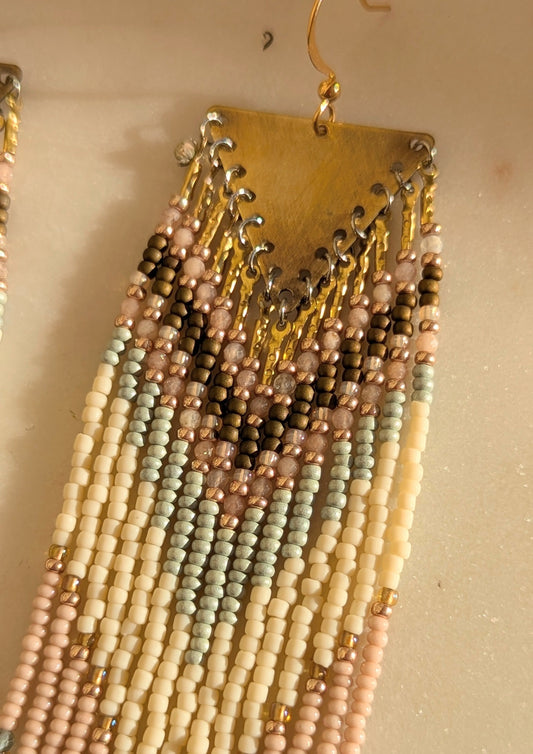Discover the exquisite beauty of our handcrafted boho beaded earrings collection. Each piece is meticulously crafted using the finest materials, including brass, glass seed beads, gemstones, and sterling silver. Our collection features unique boho-beaded designs, elegant brass accents, and sparkling gemstones, creating a perfect blend of traditional craftsmanship and a boho-chic style.