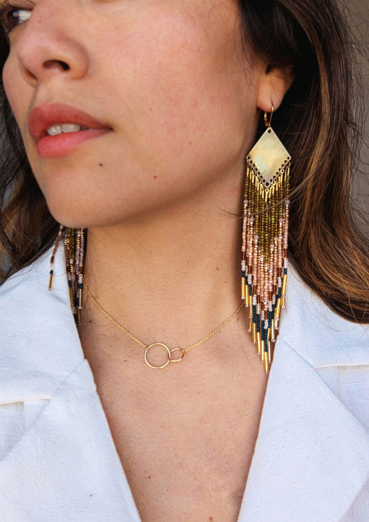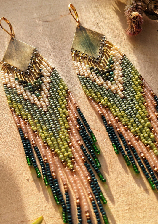 Where every thread weaves a story of its own, our high-quality artisanal handmade seed bead earring collection emerges as a manifestation of timeless beauty and intricate craftsmanship. Each piece lovingly carries within the essence of femininity and freedom, and the sultry movement of nature’s sensuous landscapes. These beaded earrings are wearable art, reflecting the infinite artistry of human creativity and power. Wear them with confidence, a small yet radiant echo of the wild beauty and deep well of creation that lives within you.
