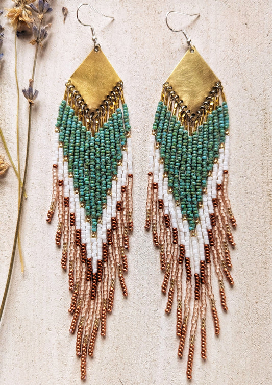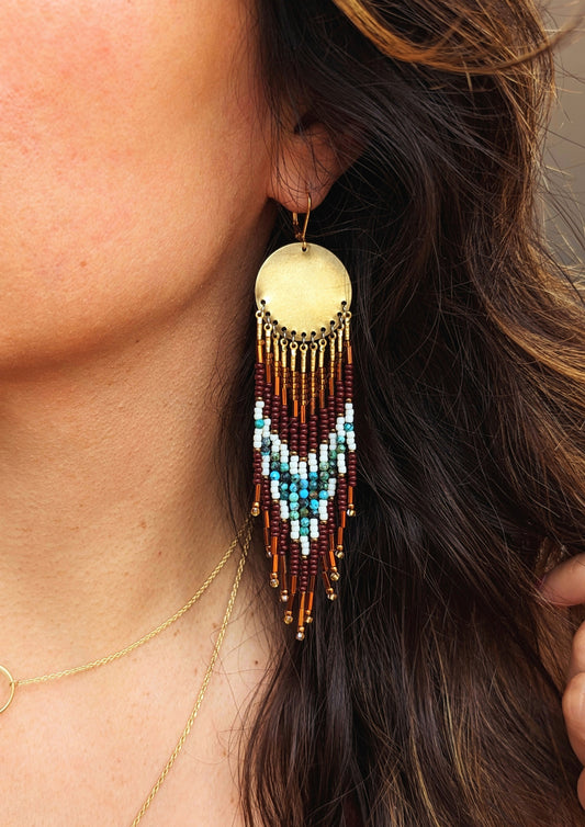 Where every thread weaves a story of its own, our high-quality artisanal handmade seed bead earring collection emerges as a manifestation of timeless beauty and intricate craftsmanship. Each piece lovingly carries within the essence of femininity and freedom, and the sultry movement of nature’s sensuous landscapes. These beaded earrings are wearable art, reflecting the infinite artistry of human creativity and power. Wear them with confidence, a small yet radiant echo of the wild beauty and deep well of creation that lives within you.