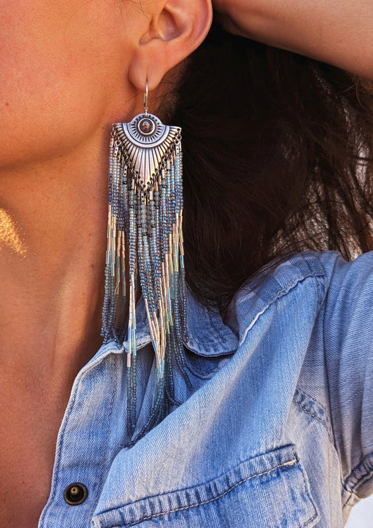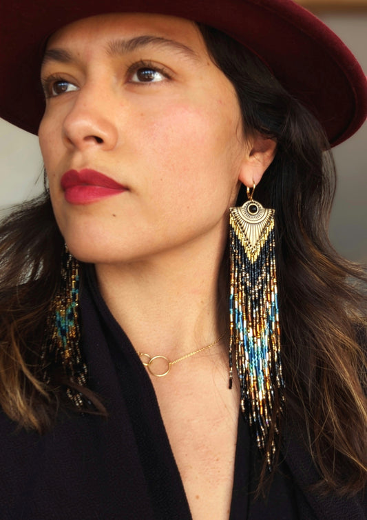 Die 13 Heavens-Kollektion ist eine Hommage an die mexikanische Handwerkskunst und das mexikanische Erbe. Diese Sammlung soll das Wesen der mexikanischen Kultur einfangen, die farbenfroh, visionär, mutig und vor allem voller Liebe ist. Hinter dieser Kollektion steckten mehr als 100 Stunden Handarbeit, die Halbedelsteine wurden handverlesen und jedes Paar wurde intuitiv gestaltet. Die 13 Heavens Collection ist eine Hommage an alle tapferen Krieger. Hier ist eine Frage an Sie: Sind SIE mutig genug?
