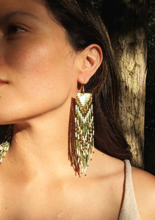 Maria Elena Ohrringe aus grünen und goldenen Perlen
