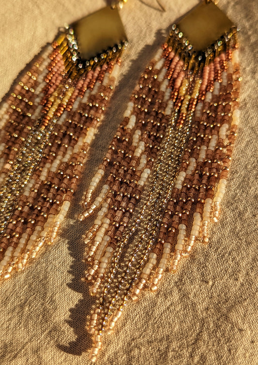 This is not soft and delicate. It’s warm dirt under your feet and metal warmed by your skin. Long beaded earrings made by hand with precision and slow fire. Brass that holds its shape. Colors like dried blood, clay, and burnt sugar. Shades that feel like dusk on bare shoulders. Nothing polished. Nothing perfect. Just weight, texture, and the kind of beauty that doesn’t ask to be liked. Mud & Honey, handcrafted beaded jewelry stripped to the bone and rooted in sensual earth.