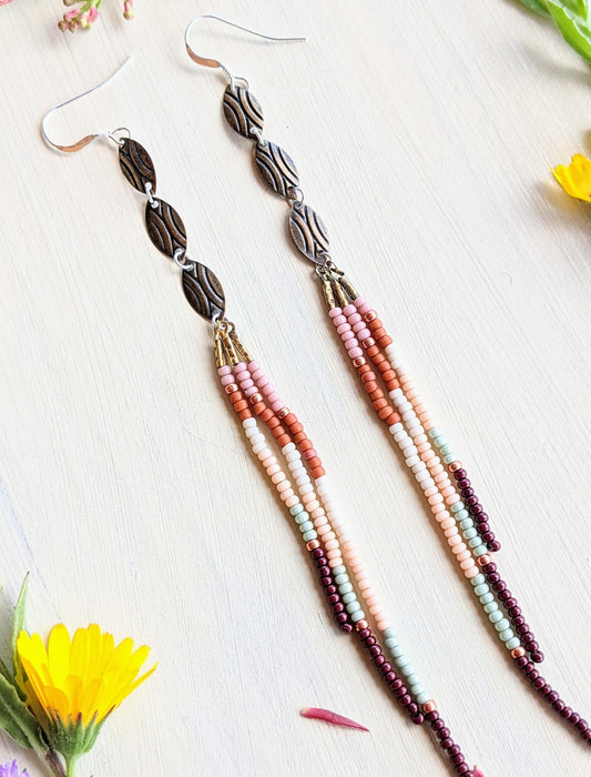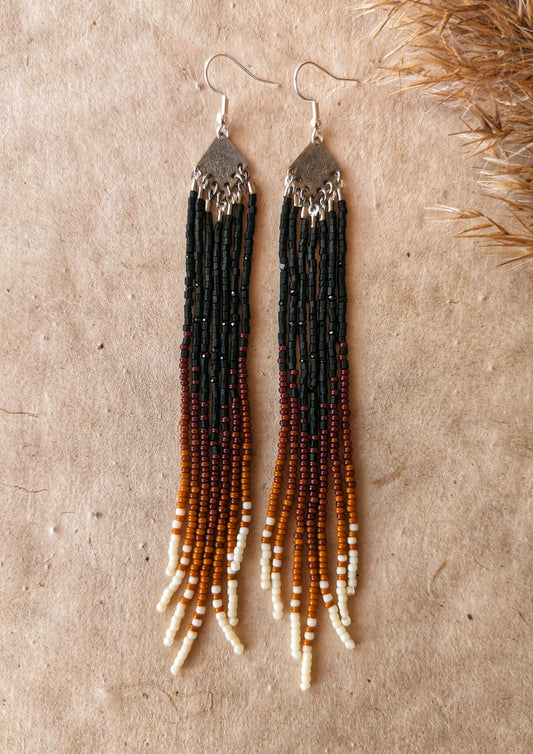 Step into a world of bold, artistic expression with Moon & Milk’s handcrafted beaded threader earrings. Each earring is an embodiment of high-quality craftsmanship, featuring intricate beadwork and a stunning mix of glass beads in earthy or colorful tones. These artisan earrings combine texture and color, making them the perfect statement pieces for anyone who loves wearable art. Whether you prefer earthy hues or subtle neutrals, this collection features long native earrings with intricate beadwork and a touch of brass jewelry. Add a piece of handcrafted beaded jewelry to your collection and experience the artistry behind every pair.