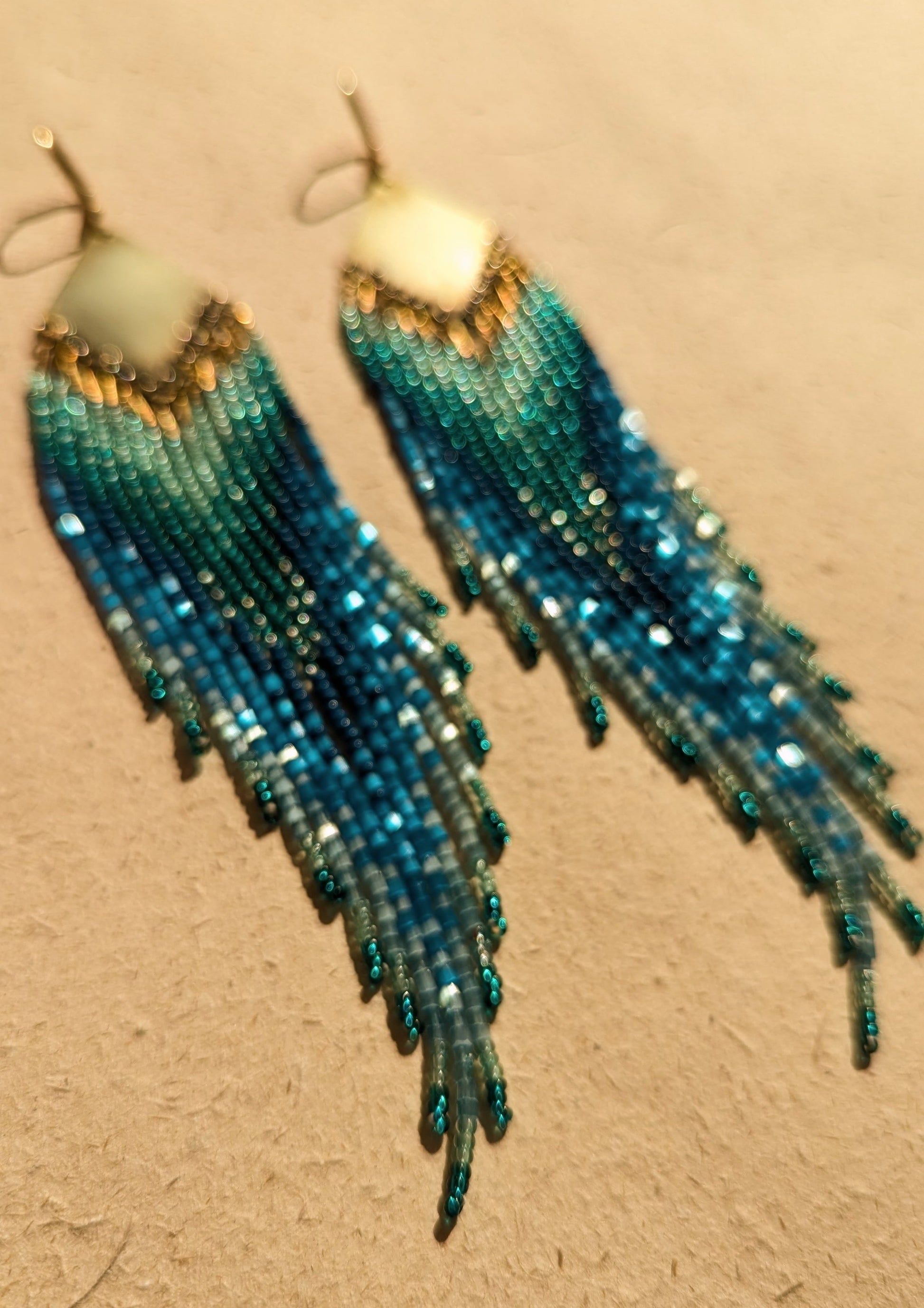 - Handmade boho beaded earrings created with glass beads, brass, and gold-filled leverbacks.