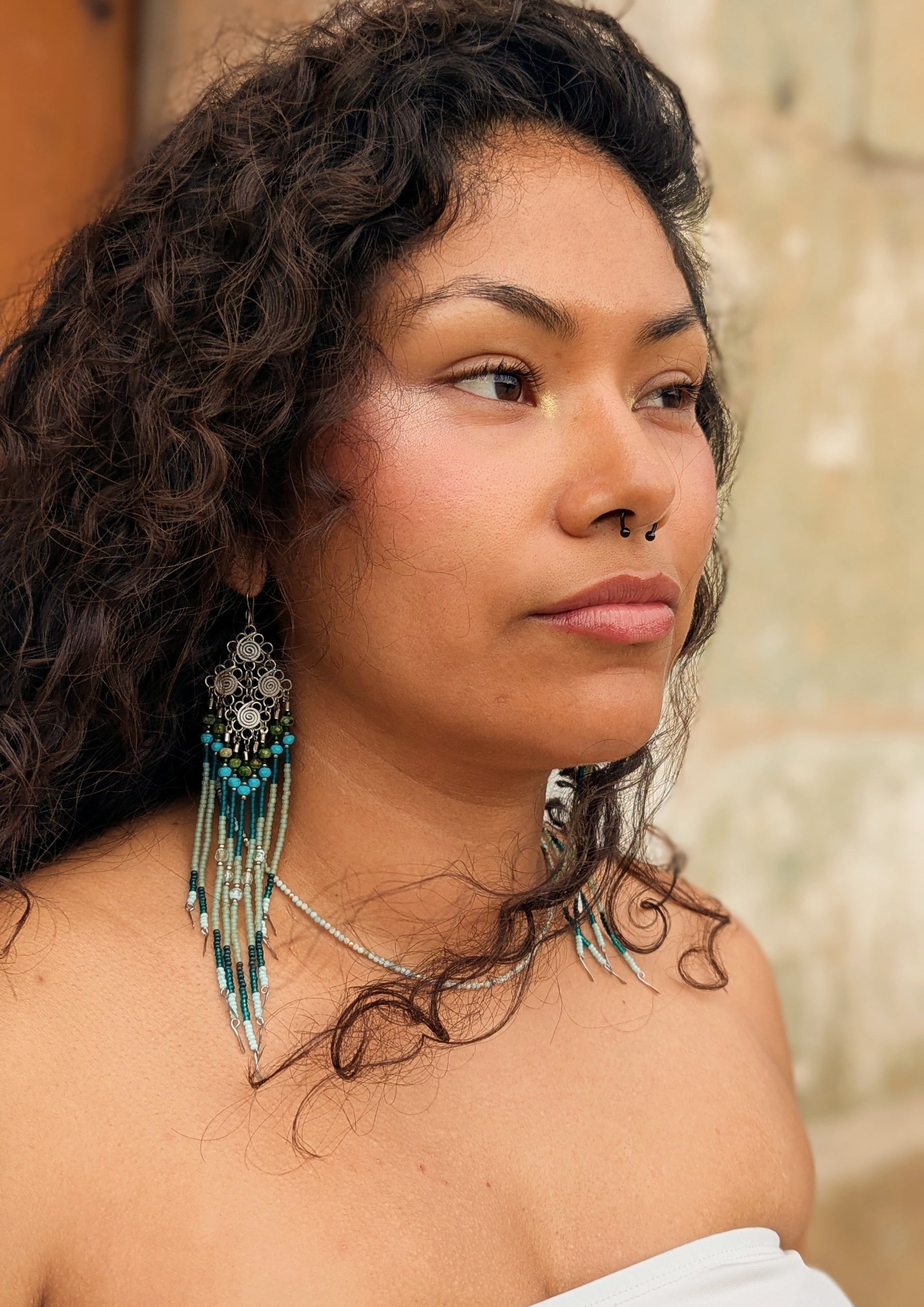Each strand moves like breath across the desert, steady and alive. The silver frame, shaped by Mexican artisan Felipe Lazcares, honors the patience of the land and the wisdom of its cycles.