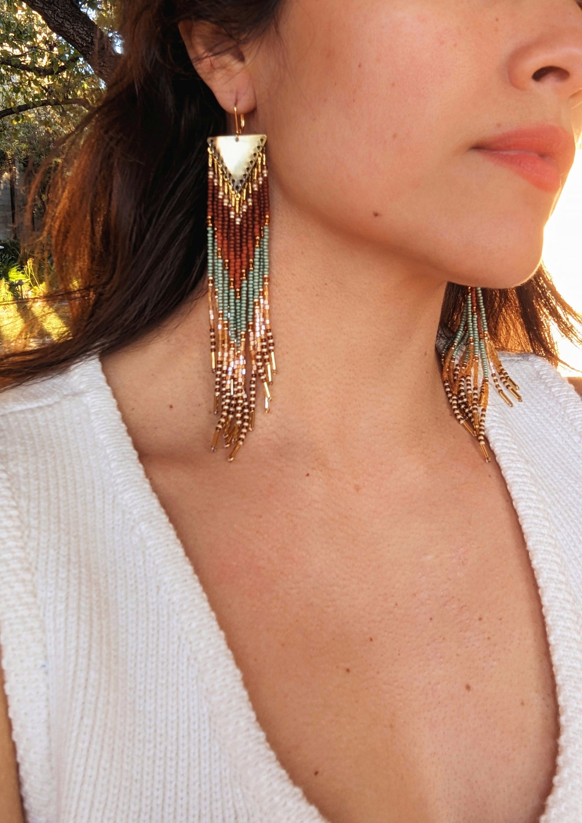 - Handgefertigte Perlenohrringe aus antikem Messing, Glasperlen, Natursteinen und hochwertigem japanischem Nylonfaden für ultimative Haltbarkeit.