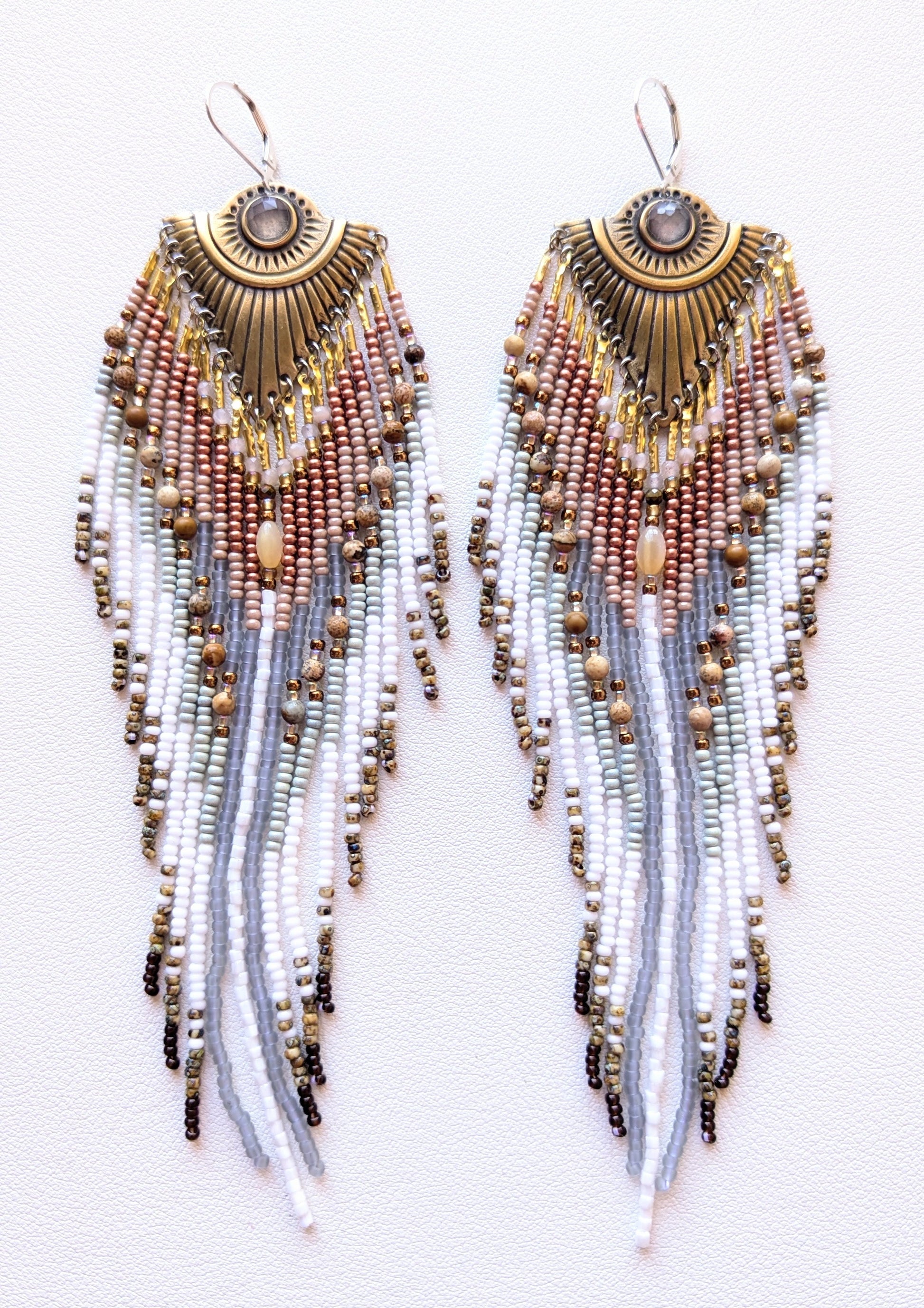 - Handmade boho beaded earrings created with glass beads, brass, and leverbacks.