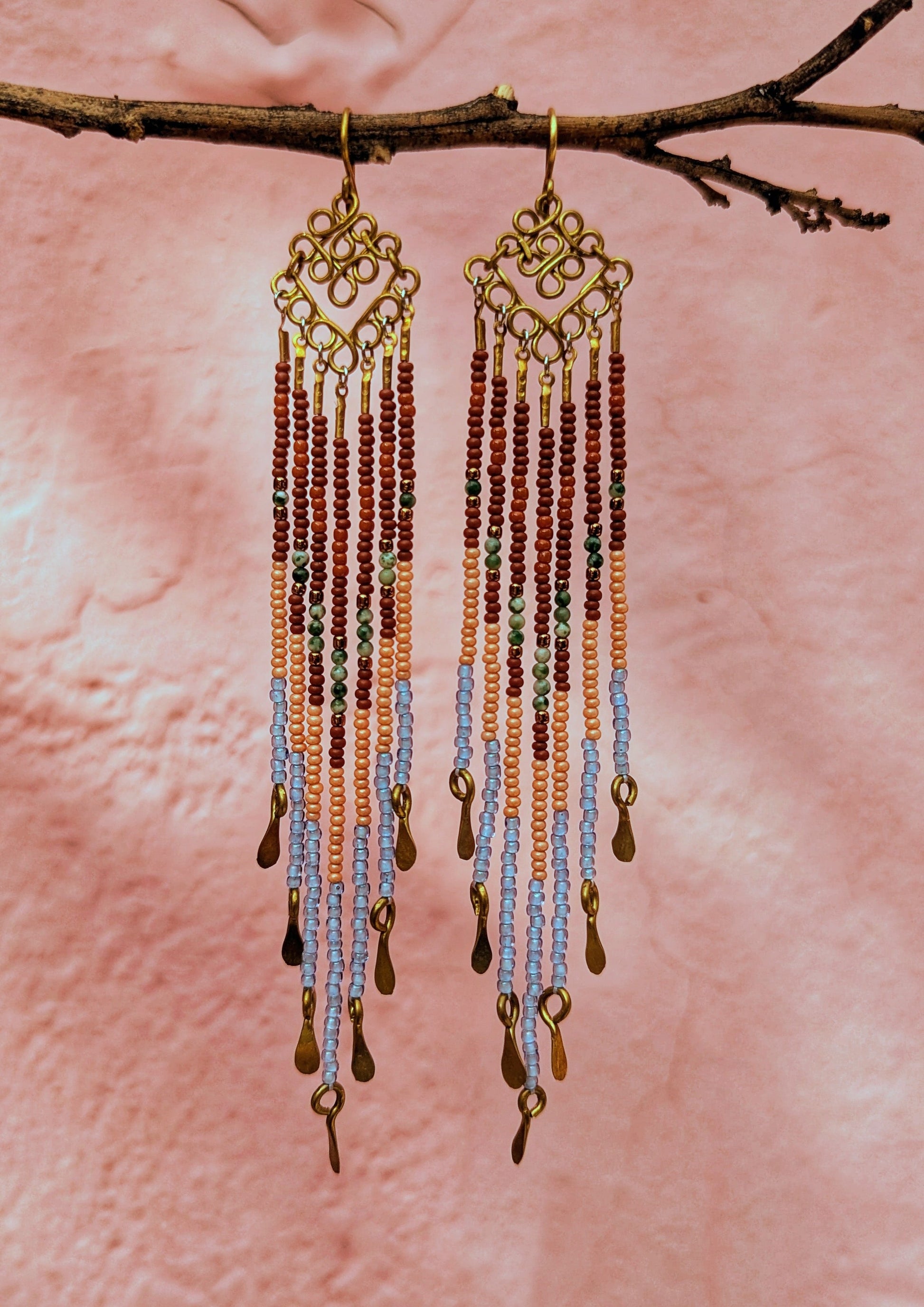 - Handmade boho beaded earrings created with glass beads, brass, and gold-filled ear wires.