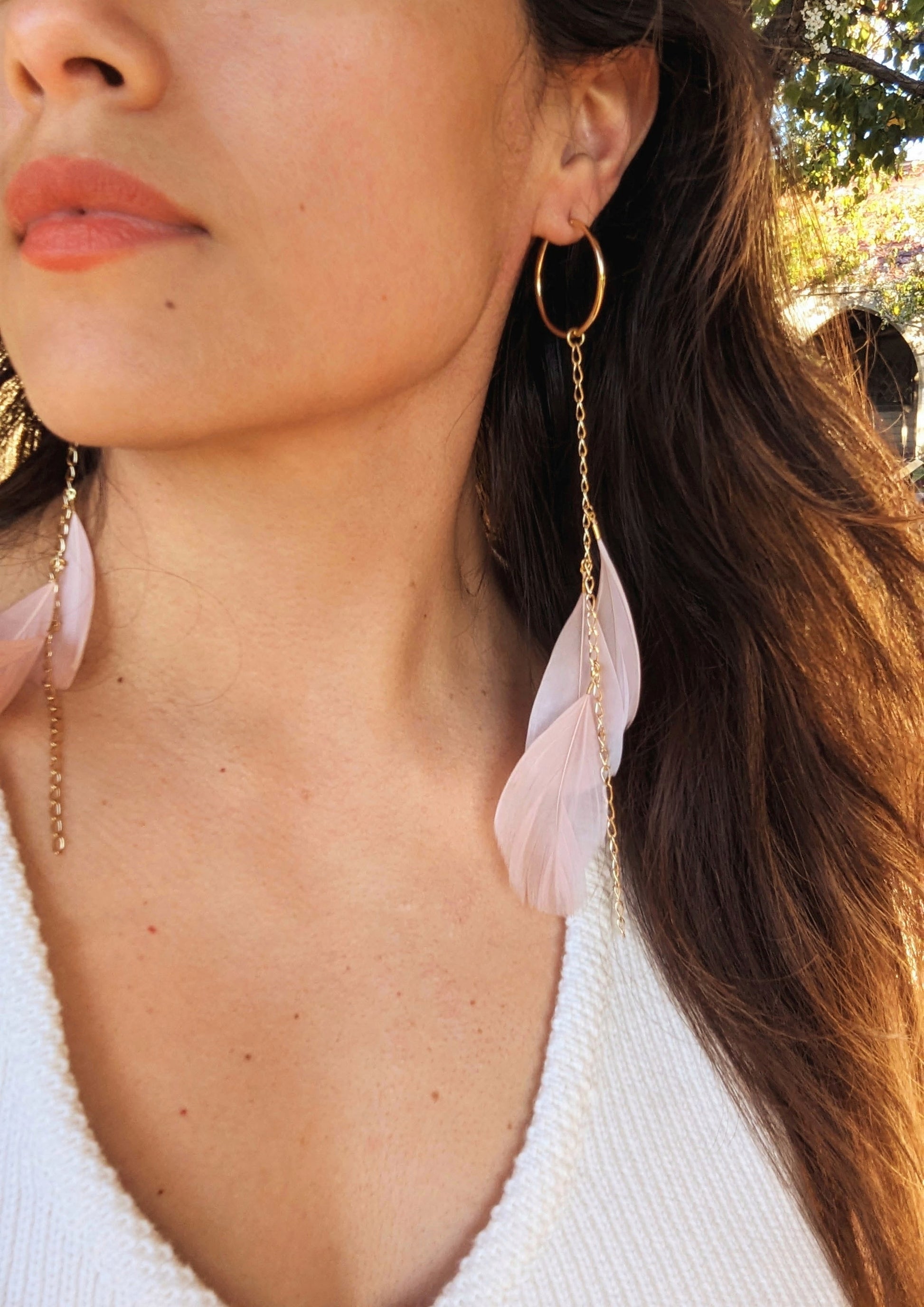 - Handgefertigte Federkettenohrringe aus hochwertigen Materialien.