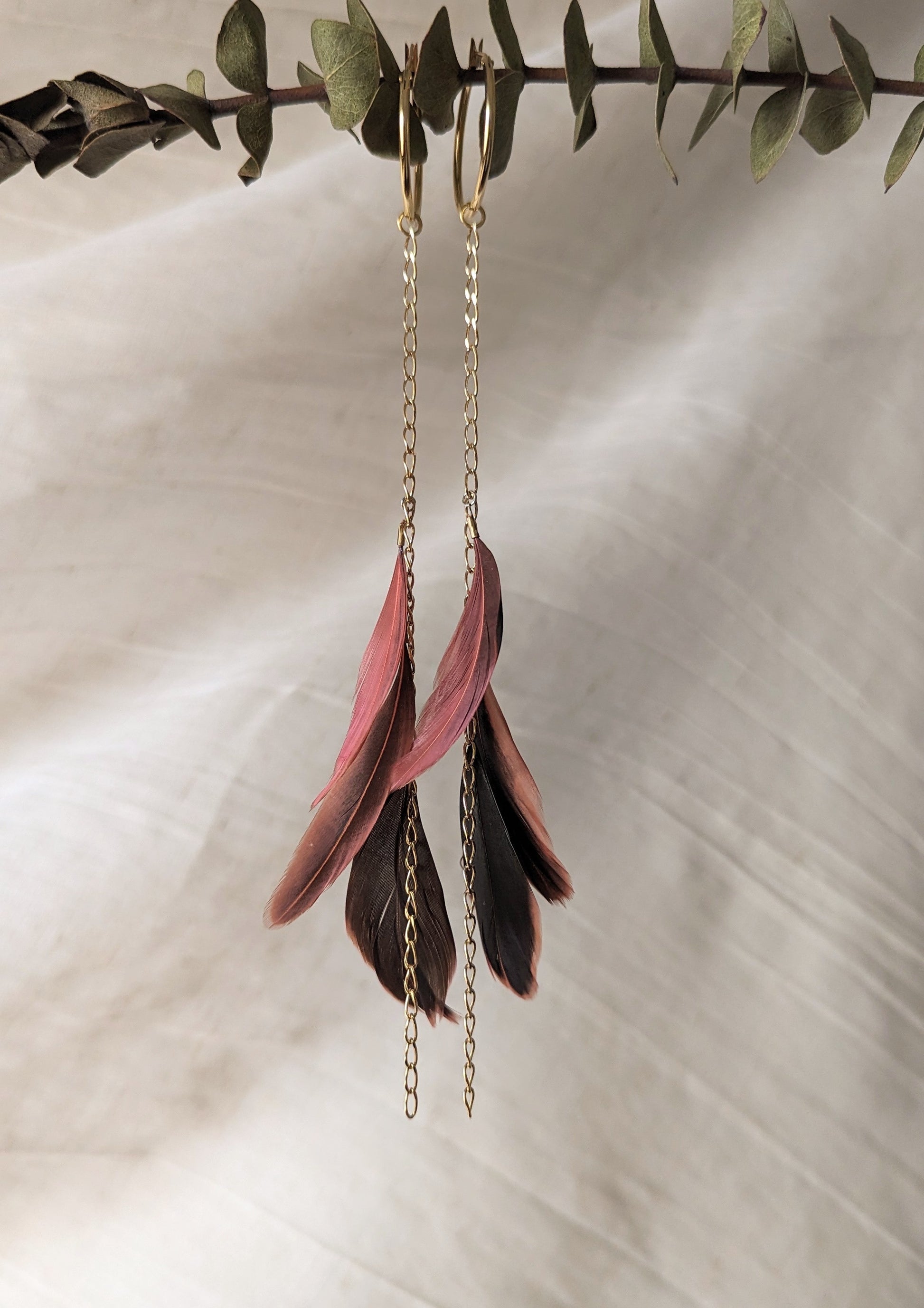 - Handgefertigte Federkettenohrringe aus hochwertigen Materialien.