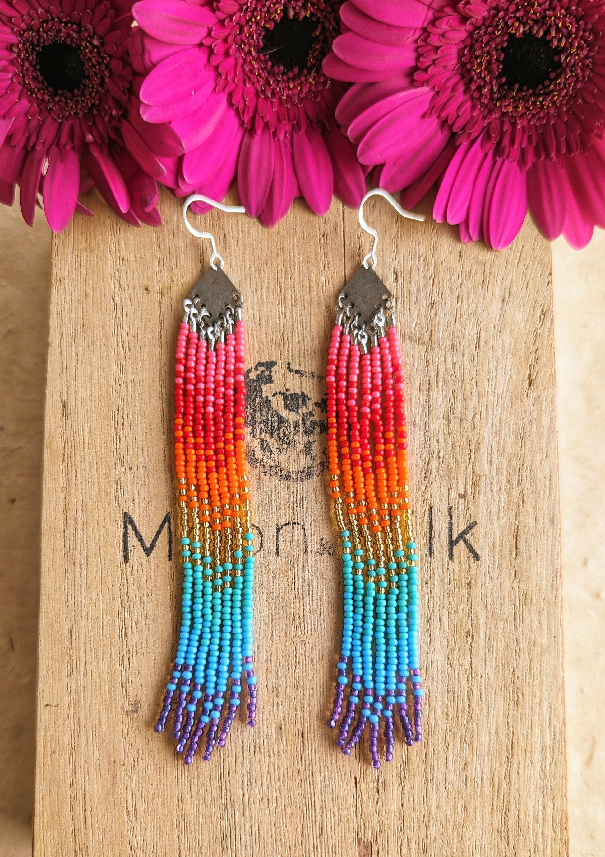 Add a touch of bohemian chic to your ensemble with our Nemo Rainbow Beaded Earrings. These earrings feature a rainbow color palette and a silver plated brass rhombus piece. The lightweight and comfortable design make them suitable for all-day wear, while the vibrant colors add a pop of color to your look.
