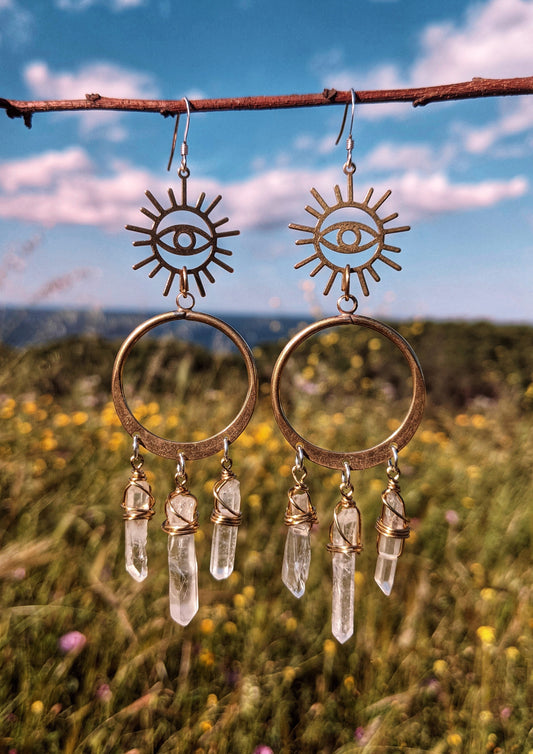 Boucles d'oreilles créoles quartz Helia Evil Eye