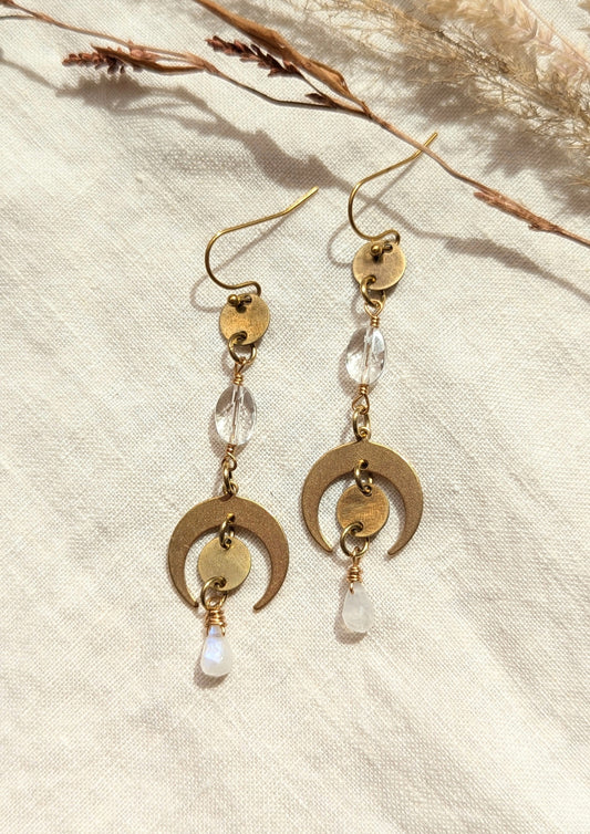 Boucles d'oreilles Artemis Crystal Crescent Moon