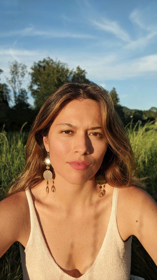 Boucles d'Oreilles Laiton Martelé Améthyste Vénus