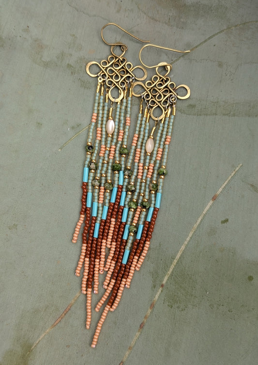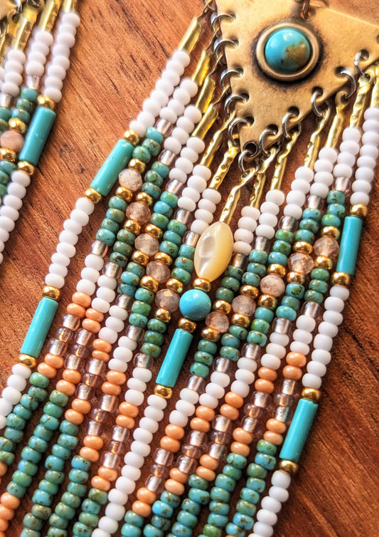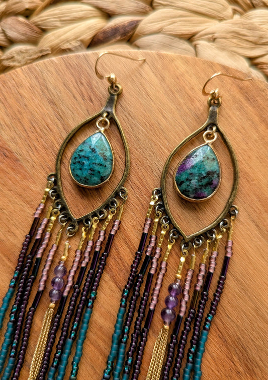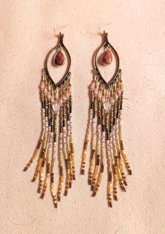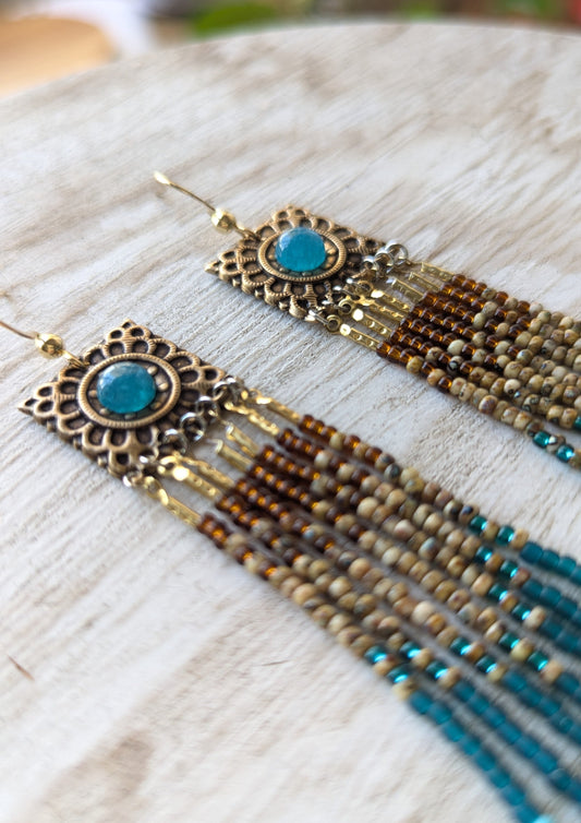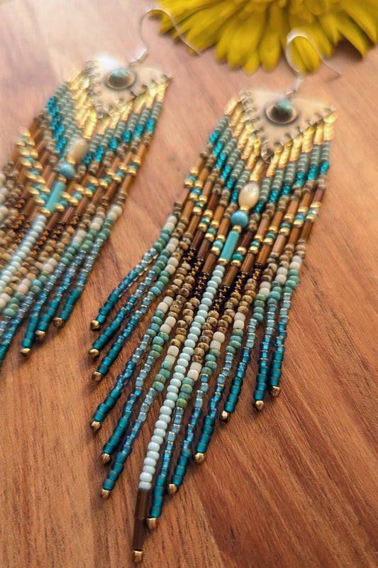 Where every thread weaves a story of its own, our high-quality artisanal handmade seed bead earring collection emerges as a manifestation of timeless beauty and intricate craftsmanship. Each piece lovingly carries within the essence of femininity and freedom, and the sultry movement of nature’s sensuous landscapes. These beaded earrings are wearable art, reflecting the infinite artistry of human creativity and power. Wear them with confidence, a small yet radiant echo of the wild beauty and deep well of creation that lives within you.