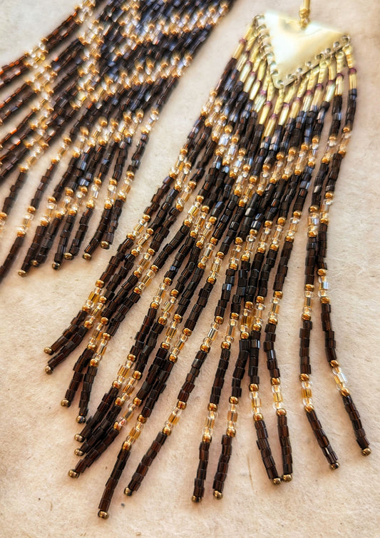This is not soft and delicate. It’s warm dirt under your feet and metal warmed by your skin. Long beaded earrings made by hand with precision and slow fire. Brass that holds its shape. Colors like dried blood, clay, and burnt sugar. Shades that feel like dusk on bare shoulders. Nothing polished. Nothing perfect. Just weight, texture, and the kind of beauty that doesn’t ask to be liked. Mud & Honey, handcrafted beaded jewelry stripped to the bone and rooted in sensual earth.