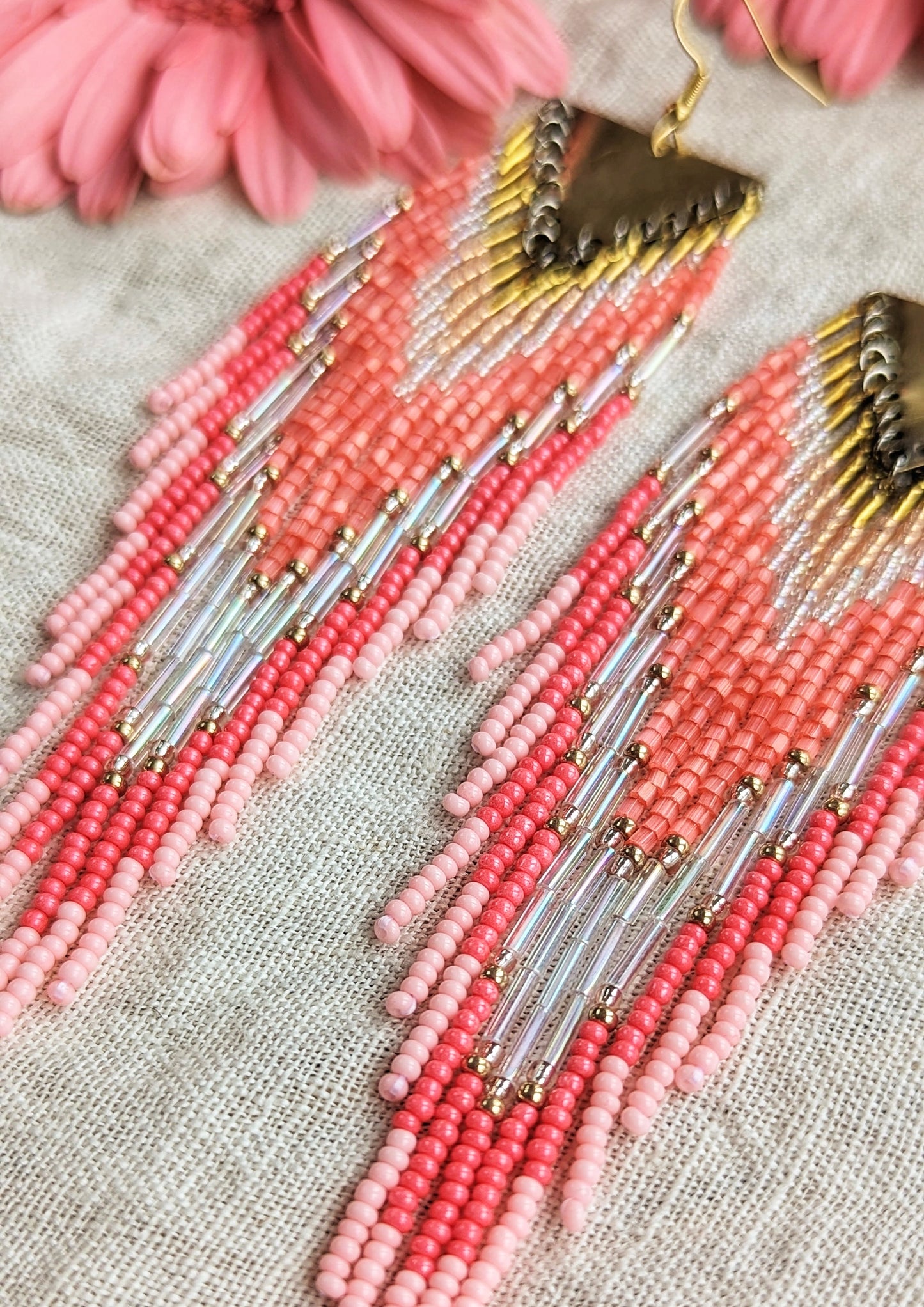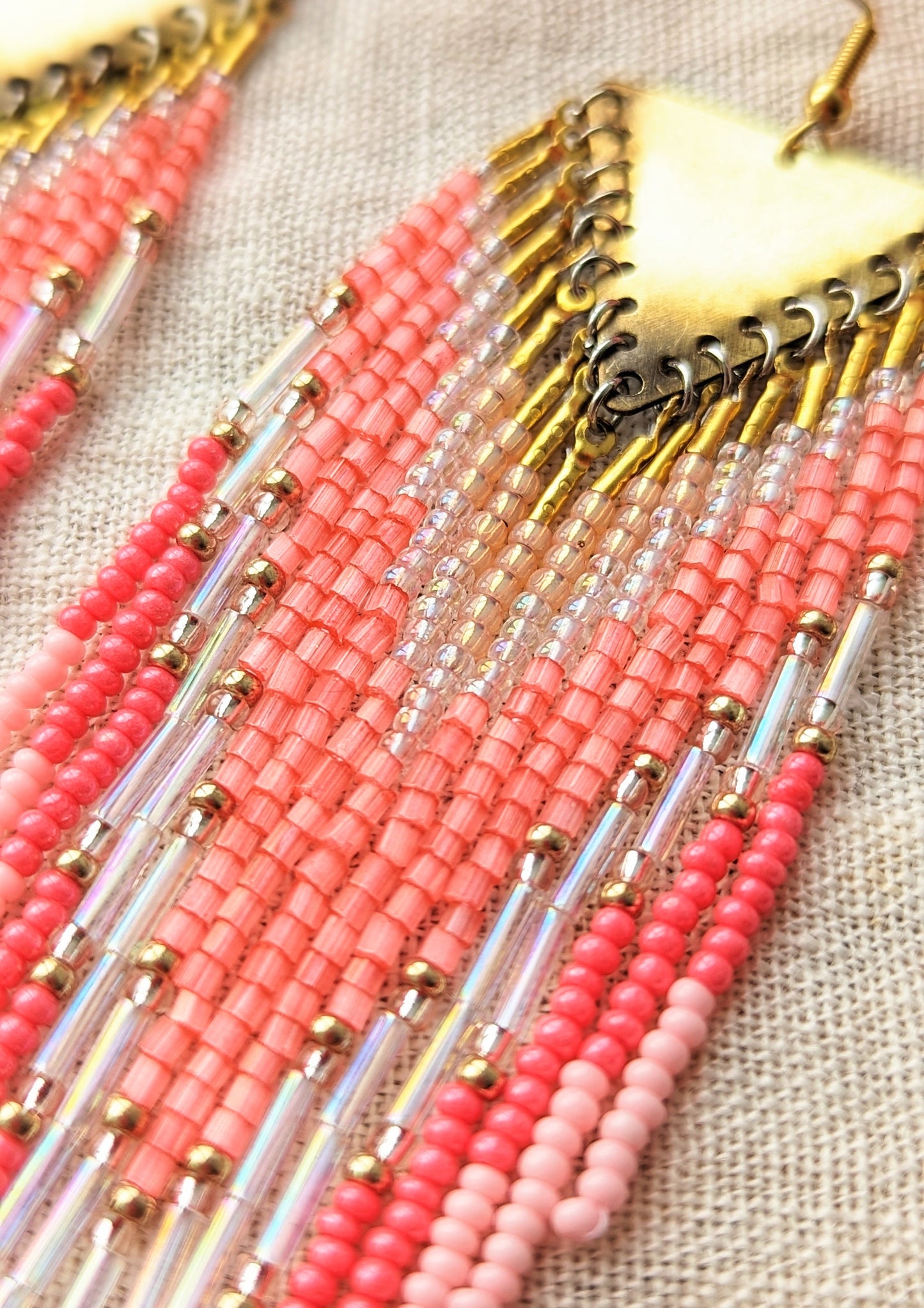 - Boucles d'oreilles en perles de rocaille faites à la main créées avec des perles de verre et du fil de nylon japonais de haute qualité.