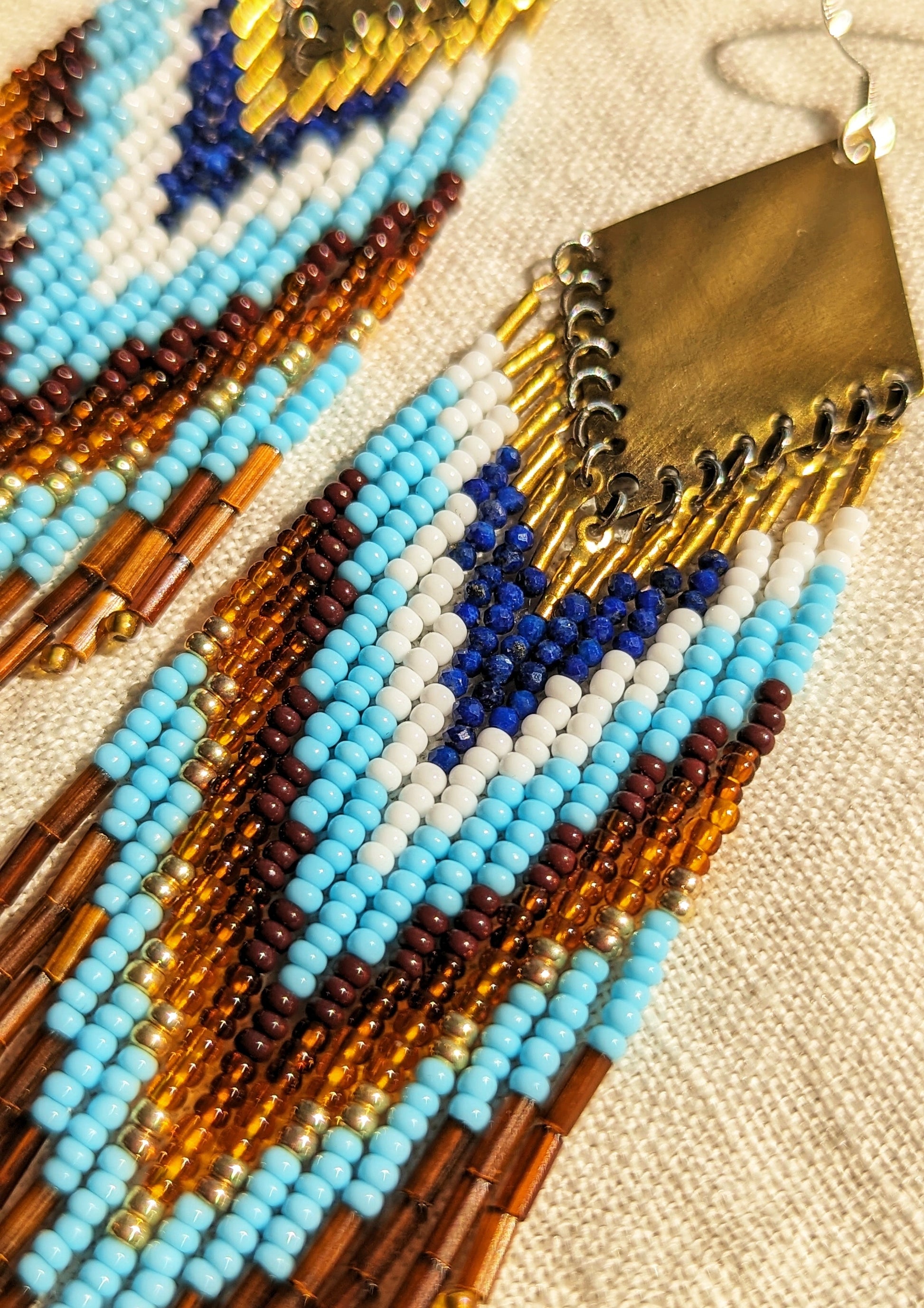 - Boucles d'oreilles perlées faites à la main créées avec du laiton doré, des perles de verre et des fils d'oreille de haute qualité.
