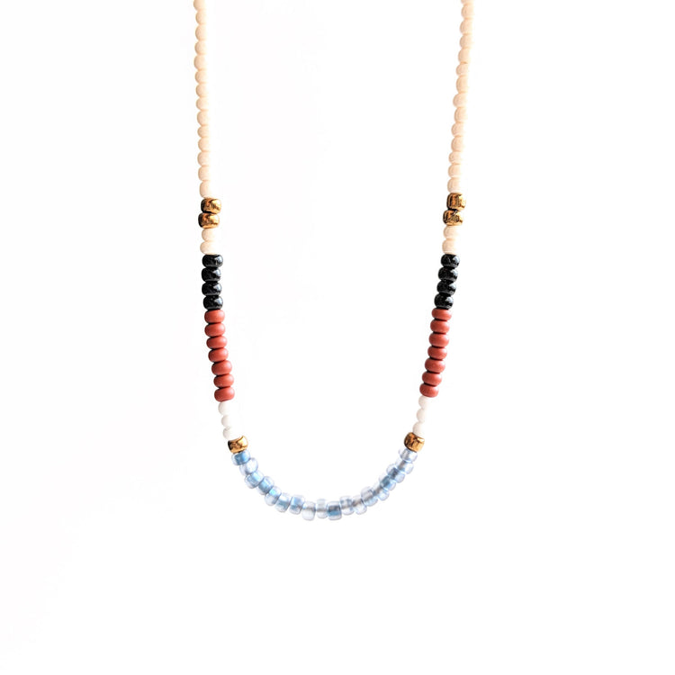 - Colorful boho seed bead choker with a dainty sterling silver chain