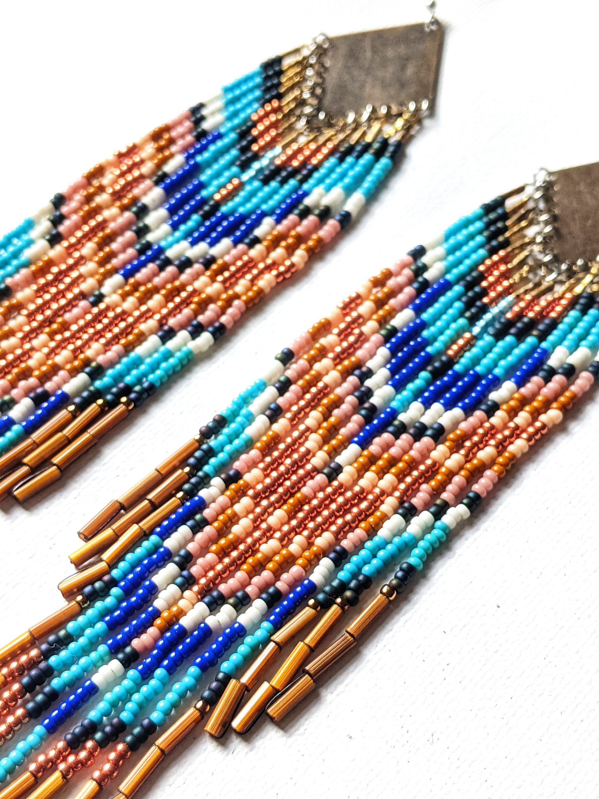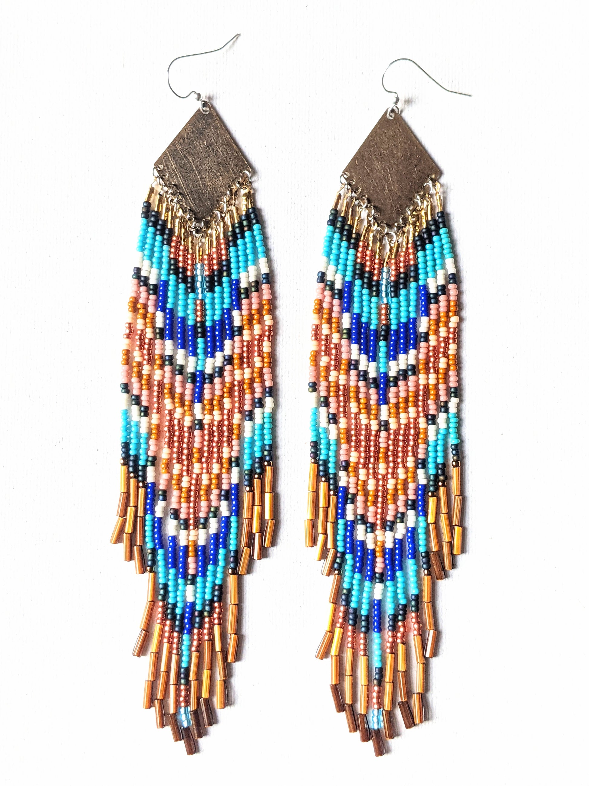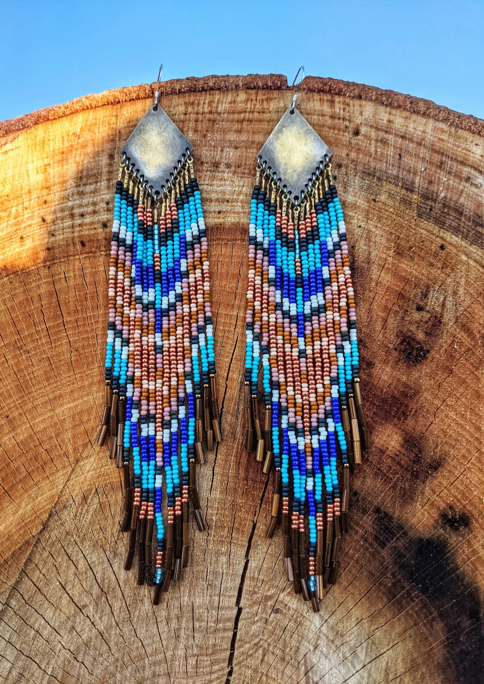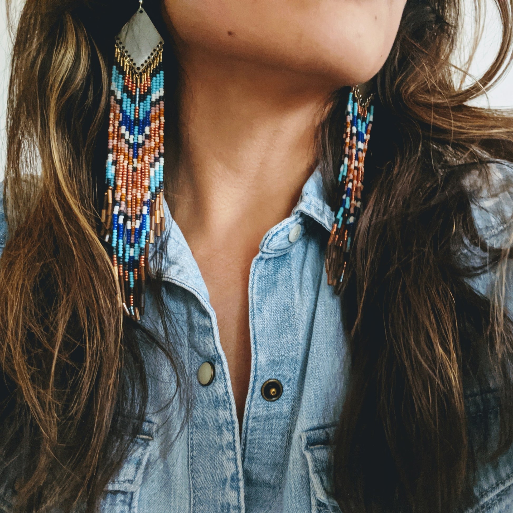 Inspired by the Southwest‘s sunsets and blue skies, these delicately handcrafted earrings pair great with your blue bell bottom jeans and long wavy locks.
