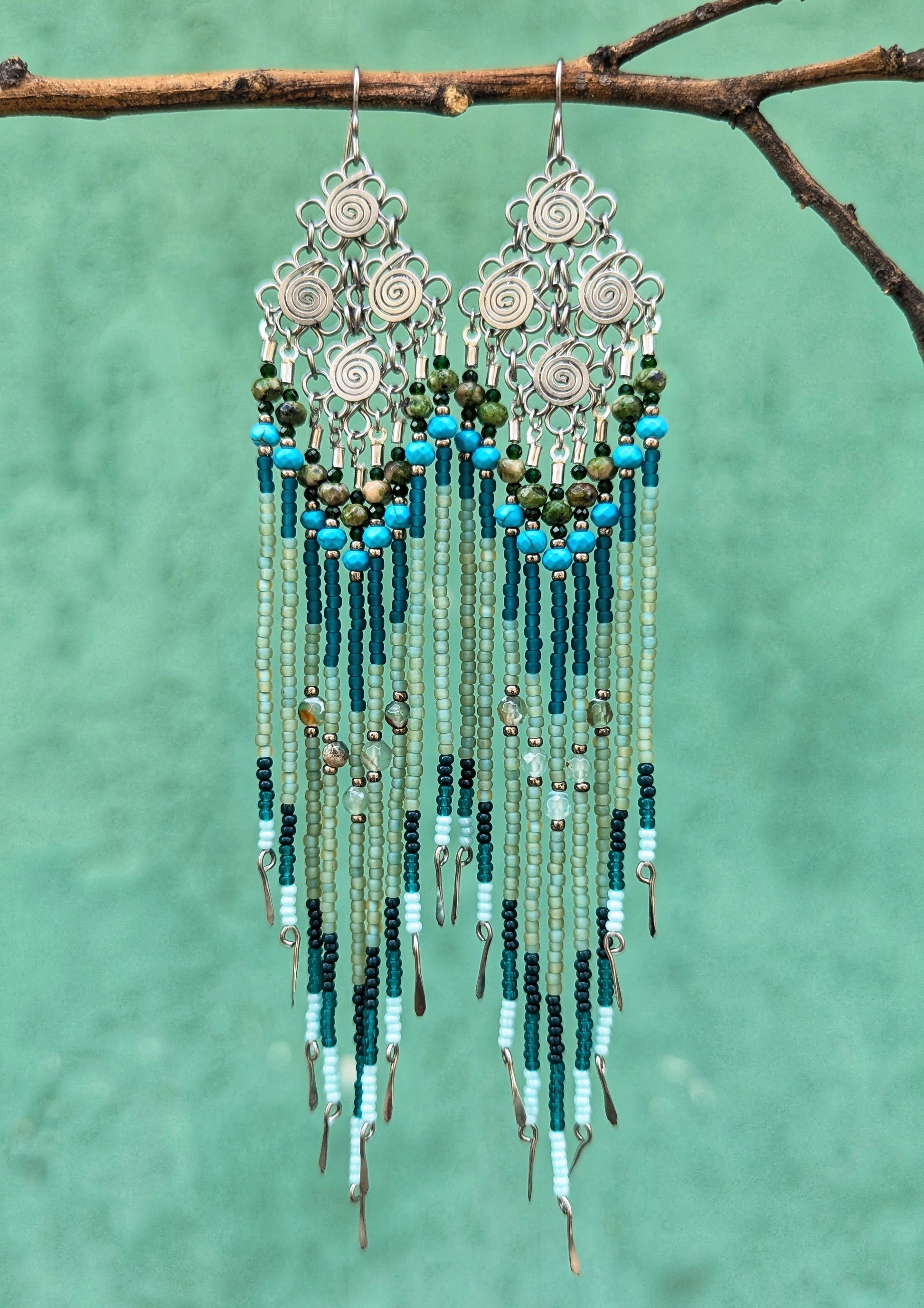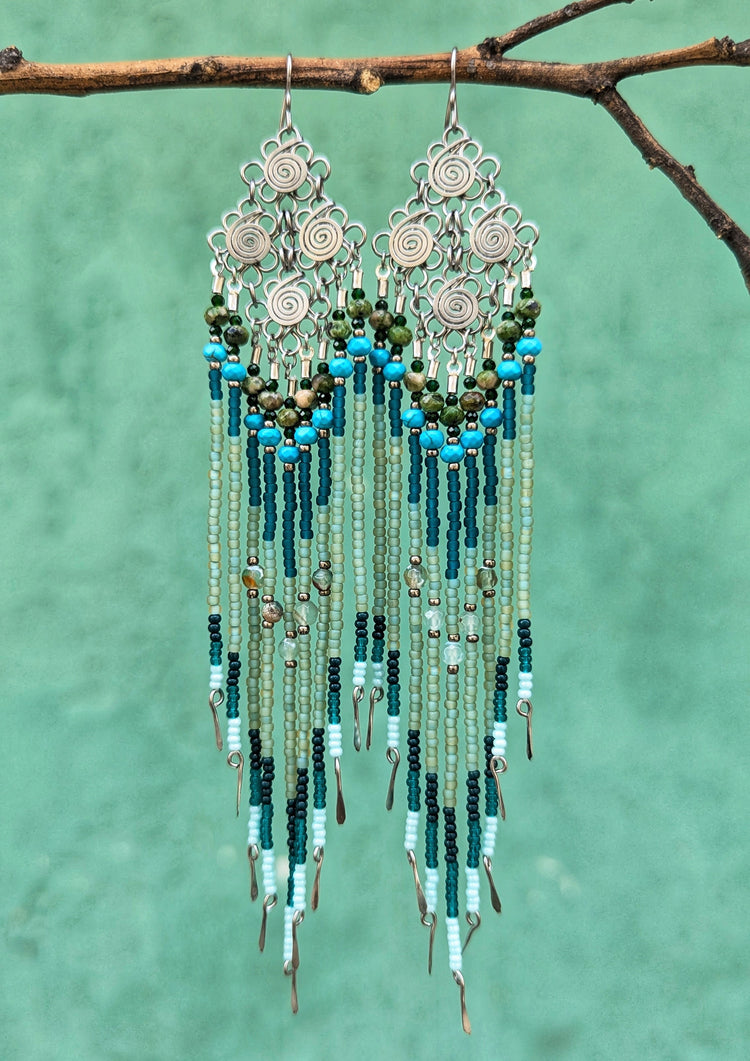 - Handmade boho beaded earrings created with glass beads, brass, and gold-filled ear wires.