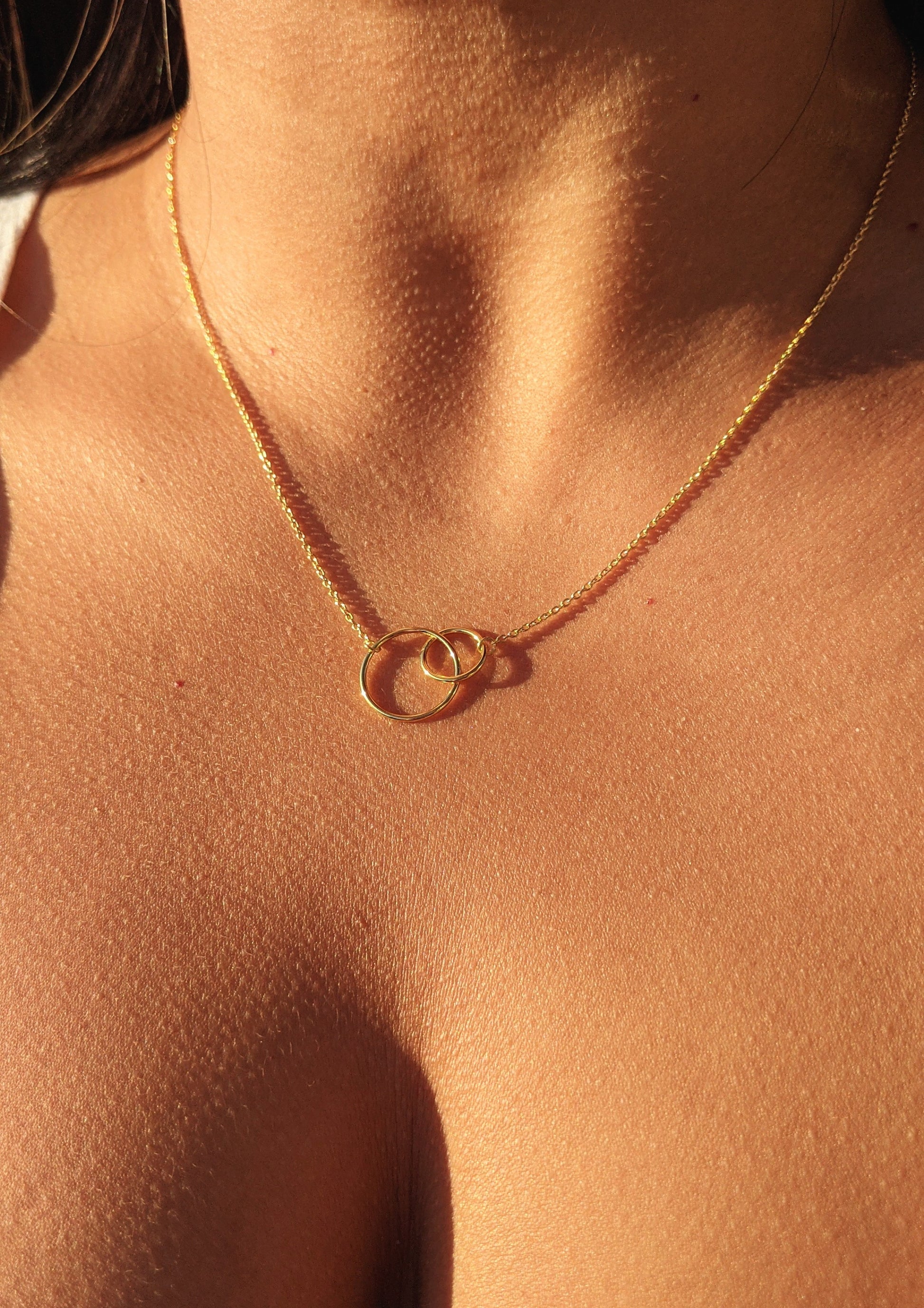- 14k gold-plated sterling silver dainty chain necklace with a double circle link.
