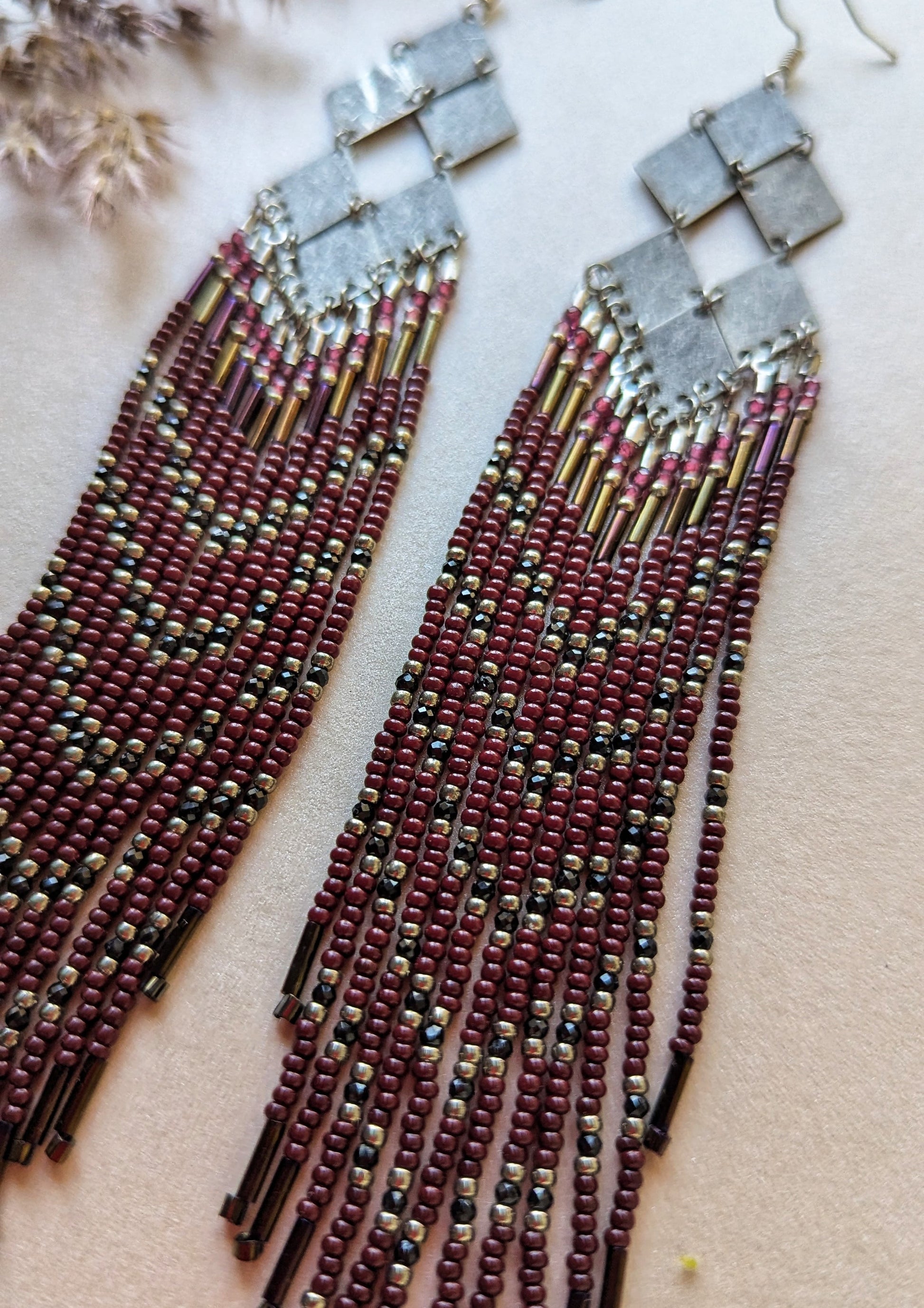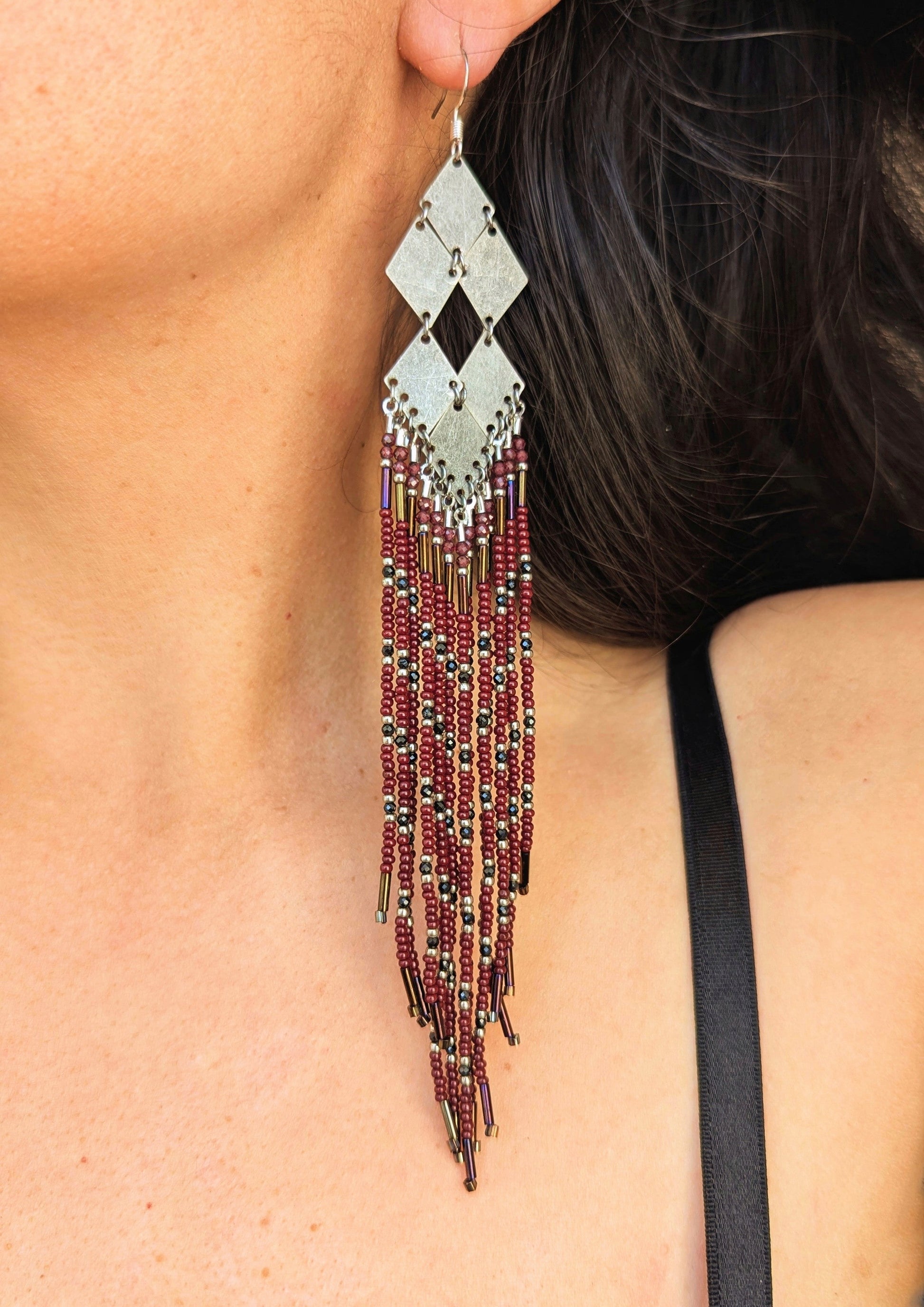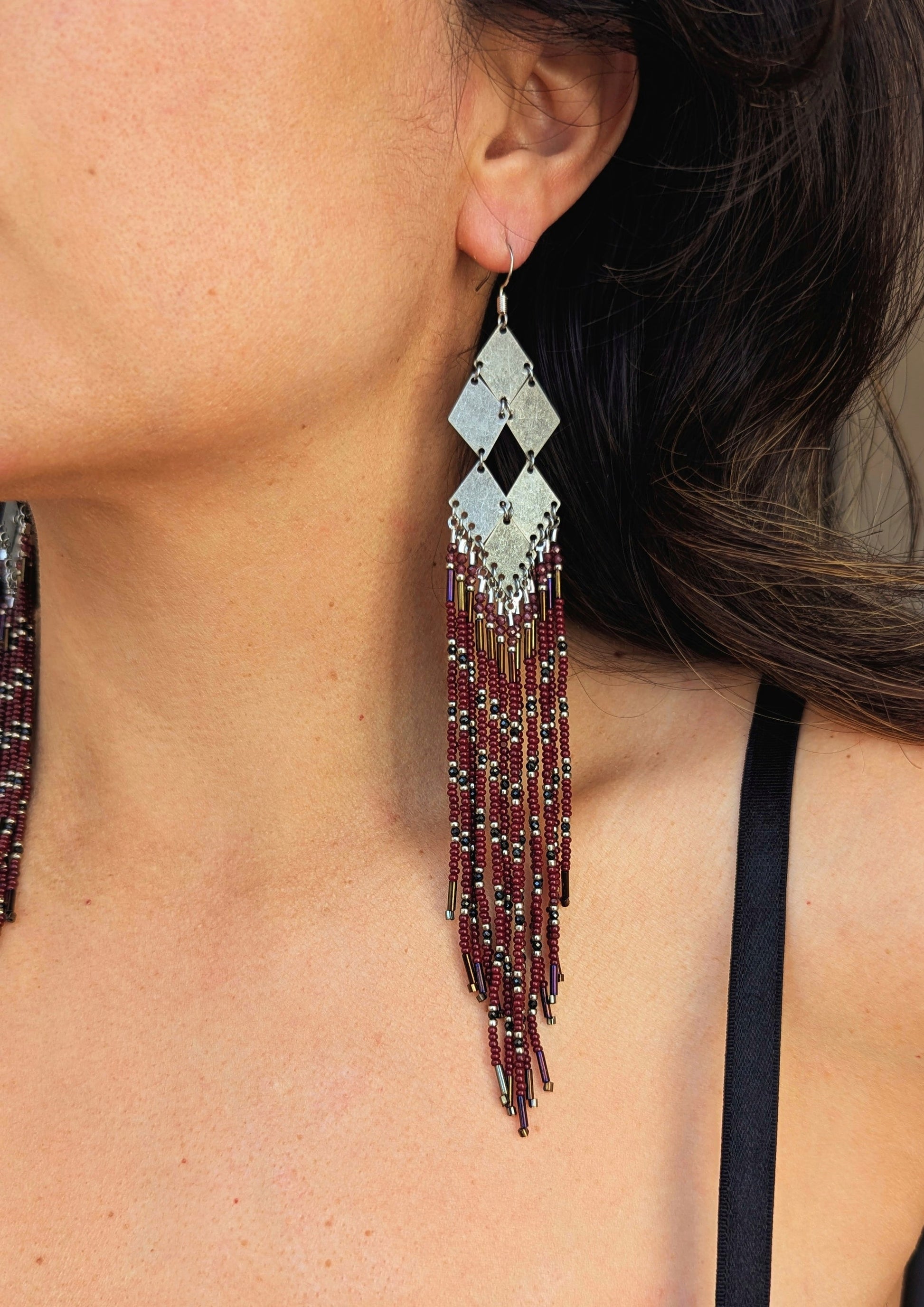 DISRUPTION does not apologize; it does not cower. It is a call to the fearless, a song for those who dare to disrupt the silence and rewrite the rules. With stones as bold as garnet and a design as fierce as a battle cry, these beaded earrings are not for the faint of spirit. They belong to the ones who understand that change does not come quietly.