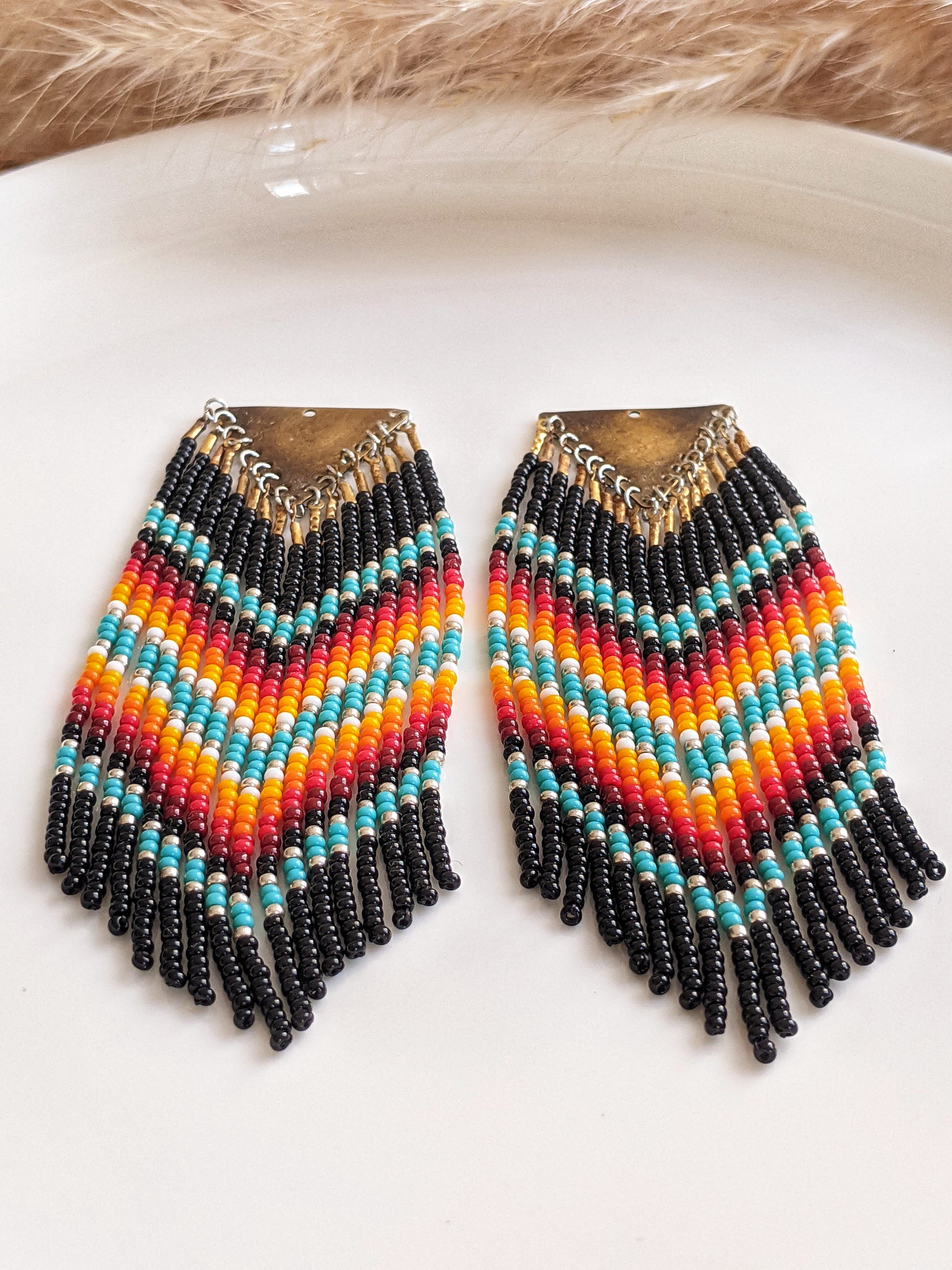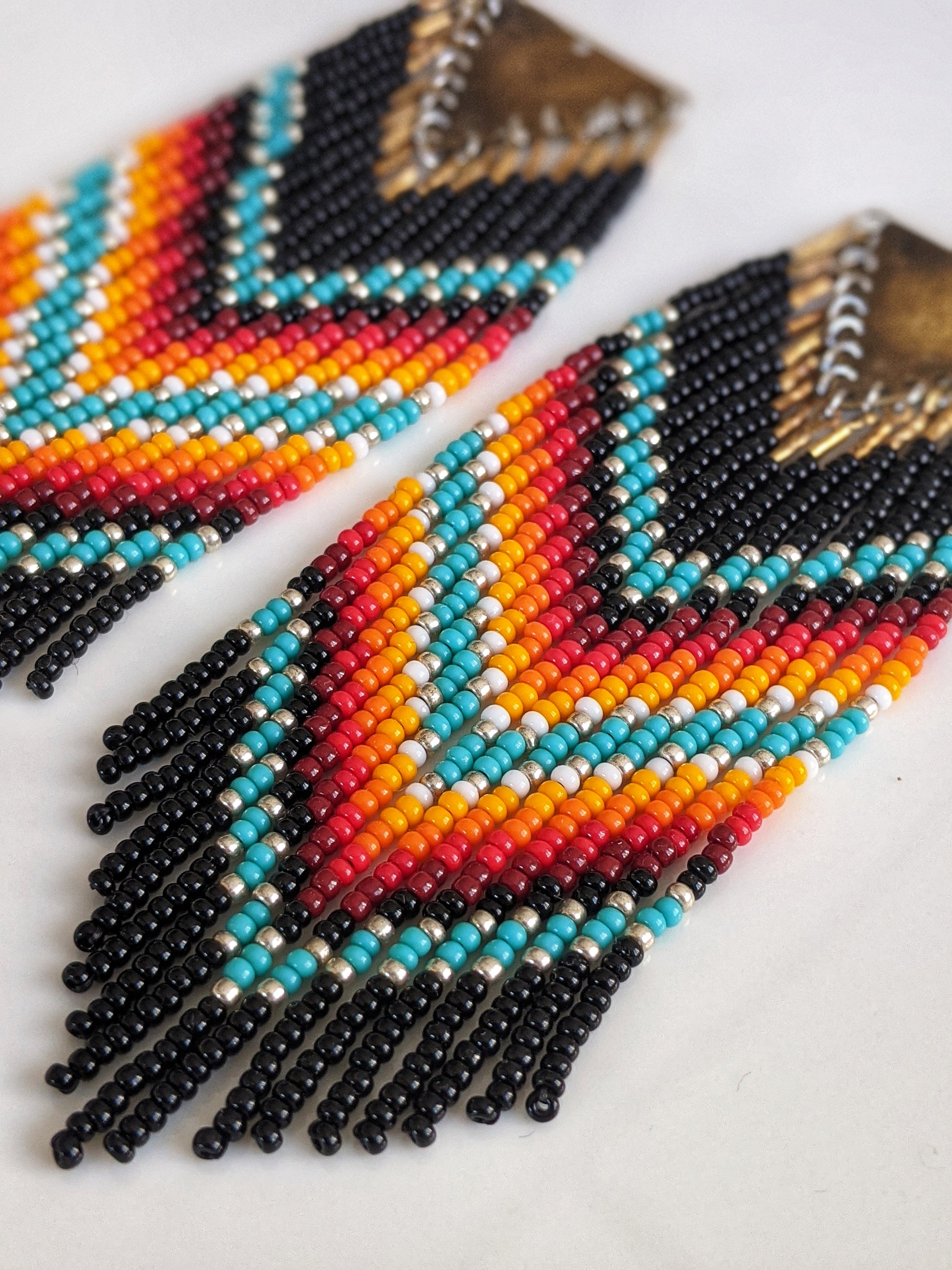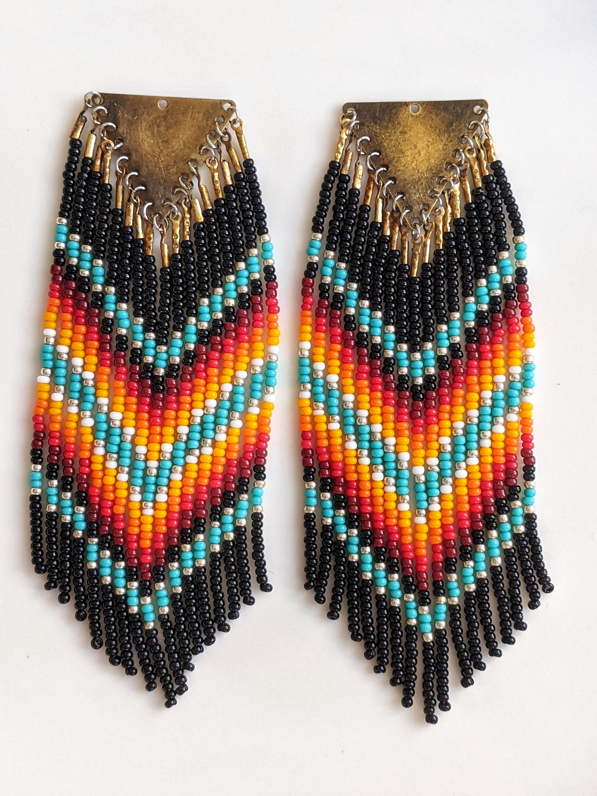 - Handmade beaded earrings created with glass beads, brass, and sterling silver ear wires.