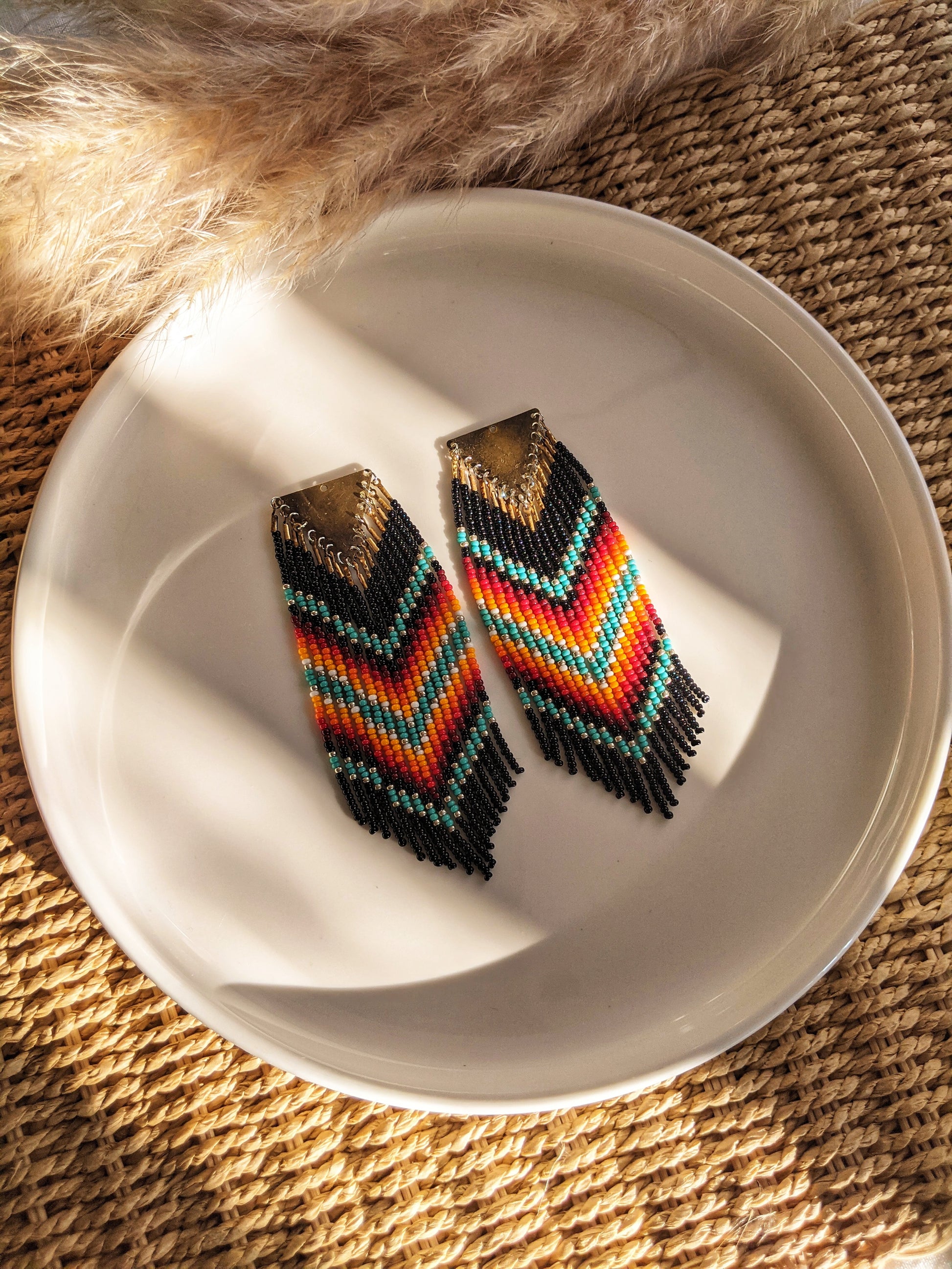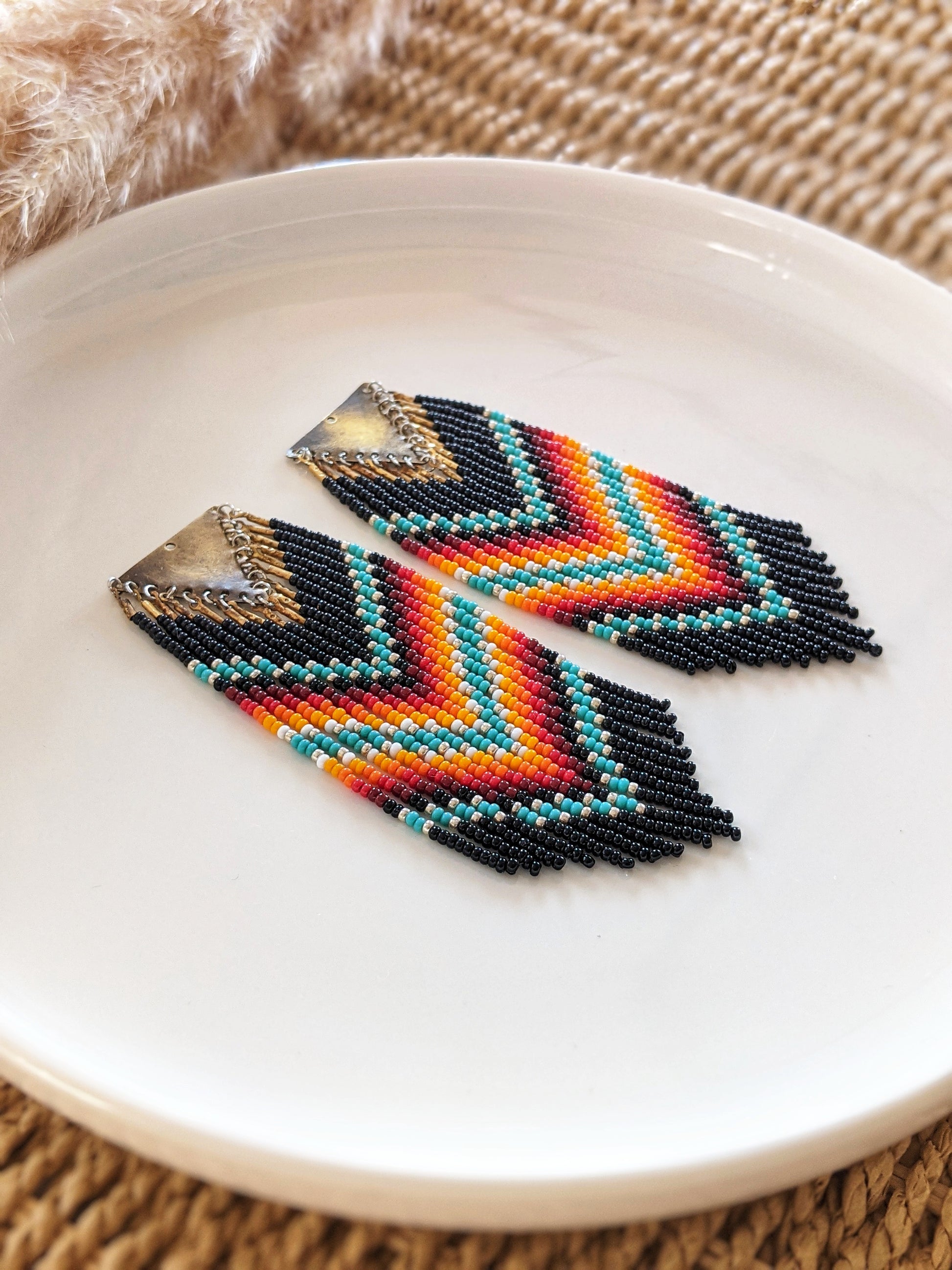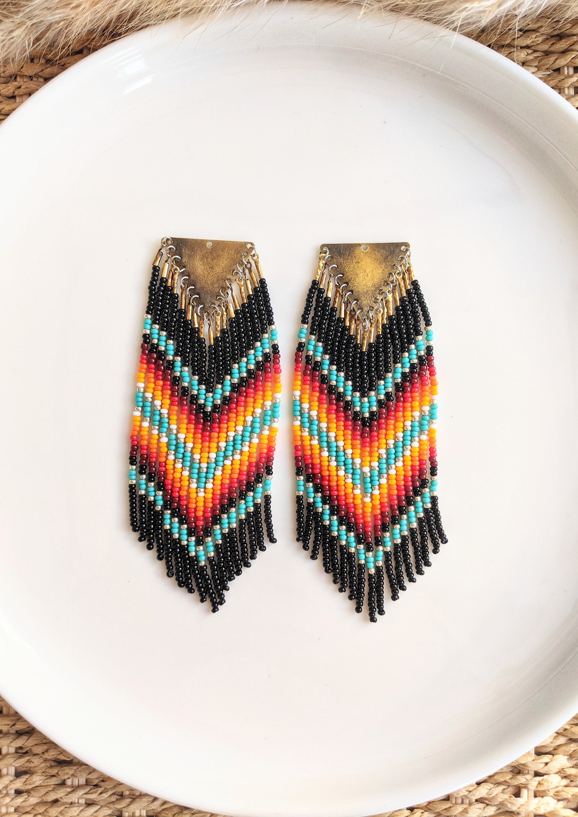 - Handmade beaded earrings created with glass beads, brass, and sterling silver ear wires.