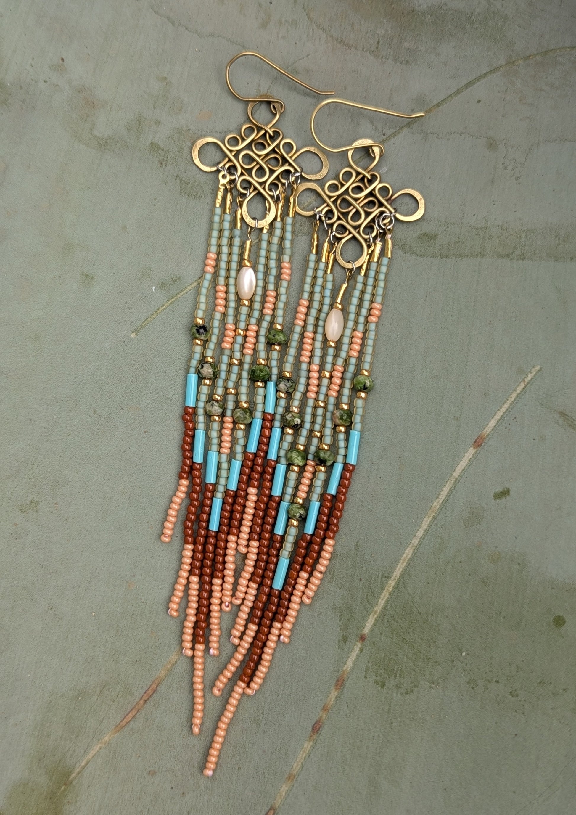 - Handmade boho beaded earrings created with glass beads, brass, and gold-plated ear wires.