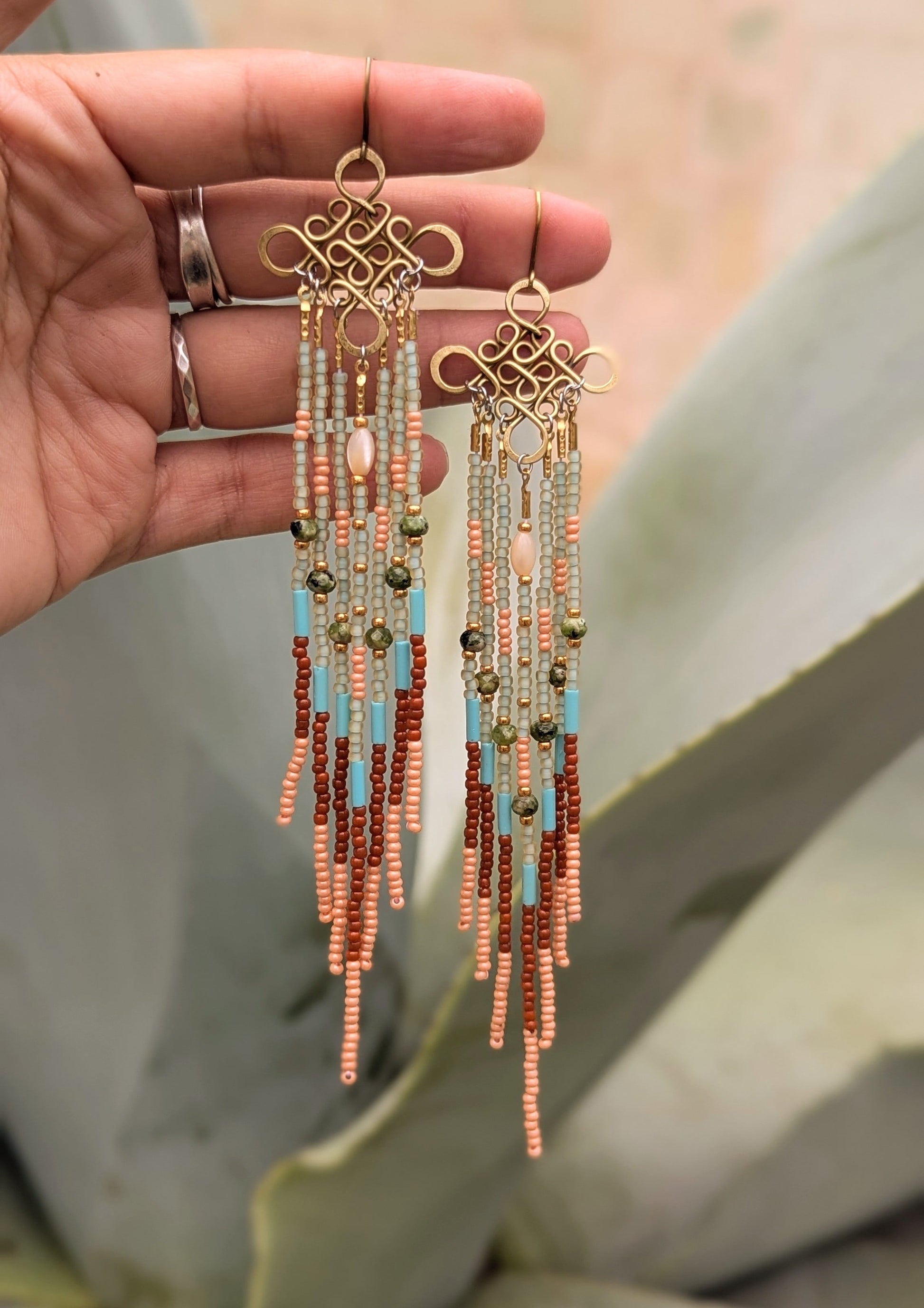 There is a nectar that rises beneath the Mexican desert sun, where time lingers and the air hums with gold. The Dulce de Maguey Beaded Earrings were created from that sweetness, from the sacred meeting of light and dust.