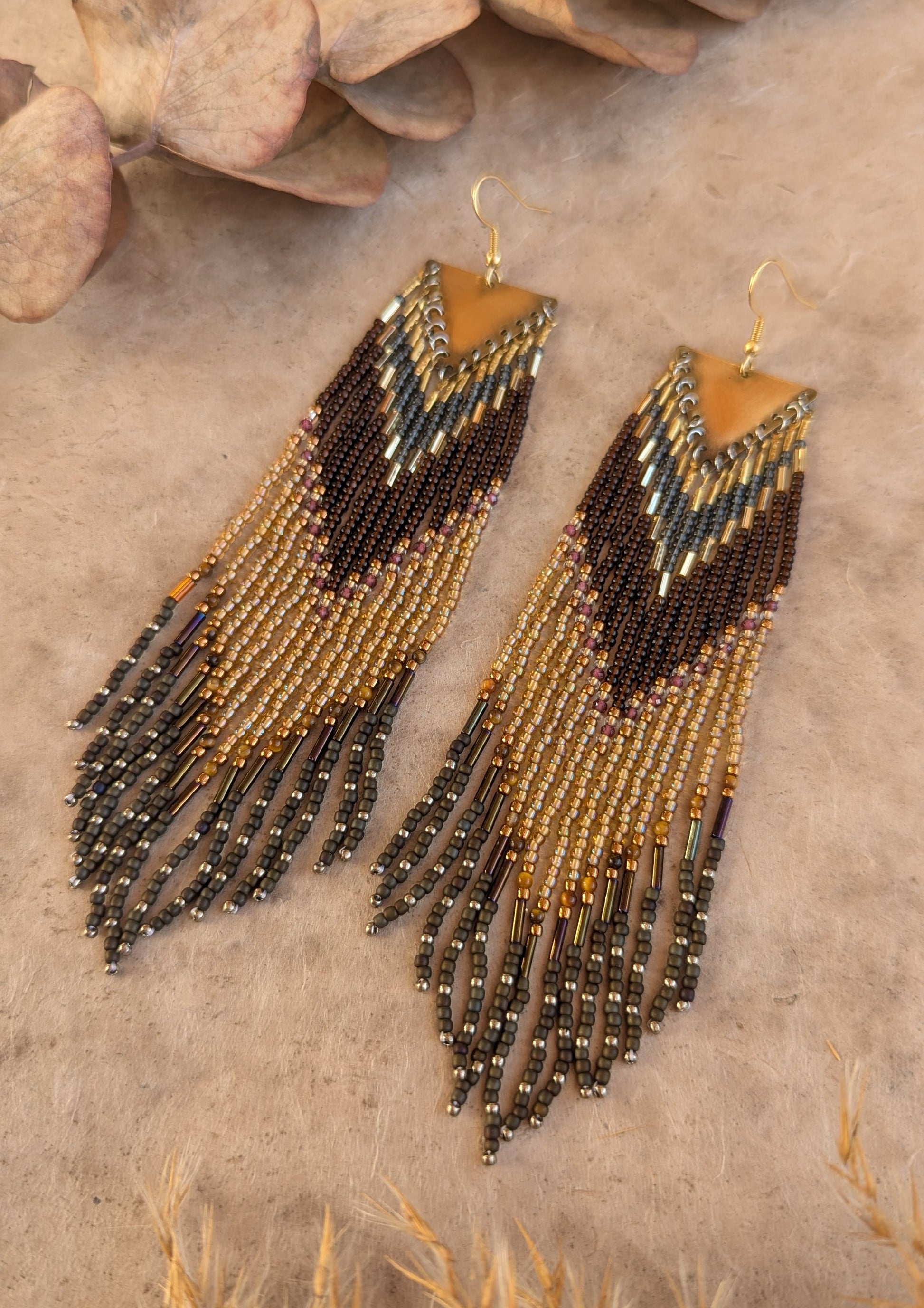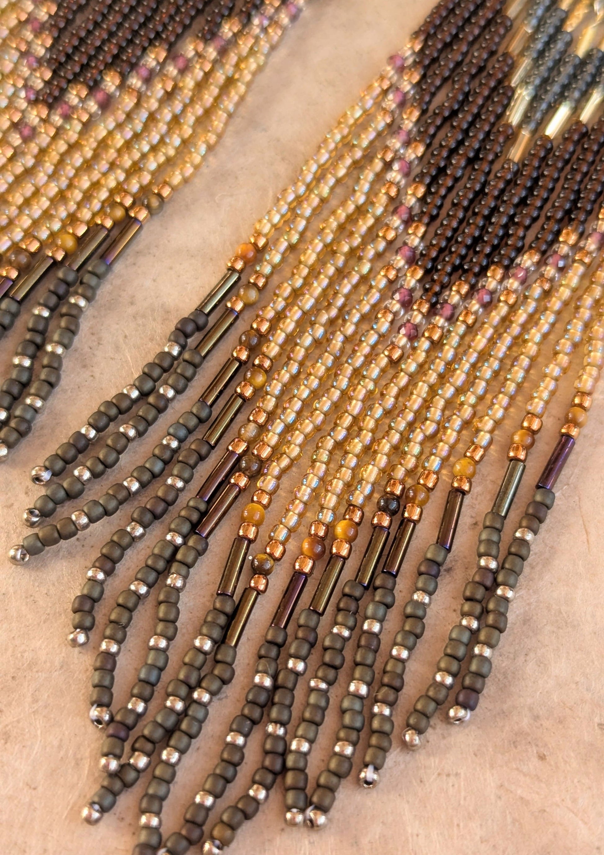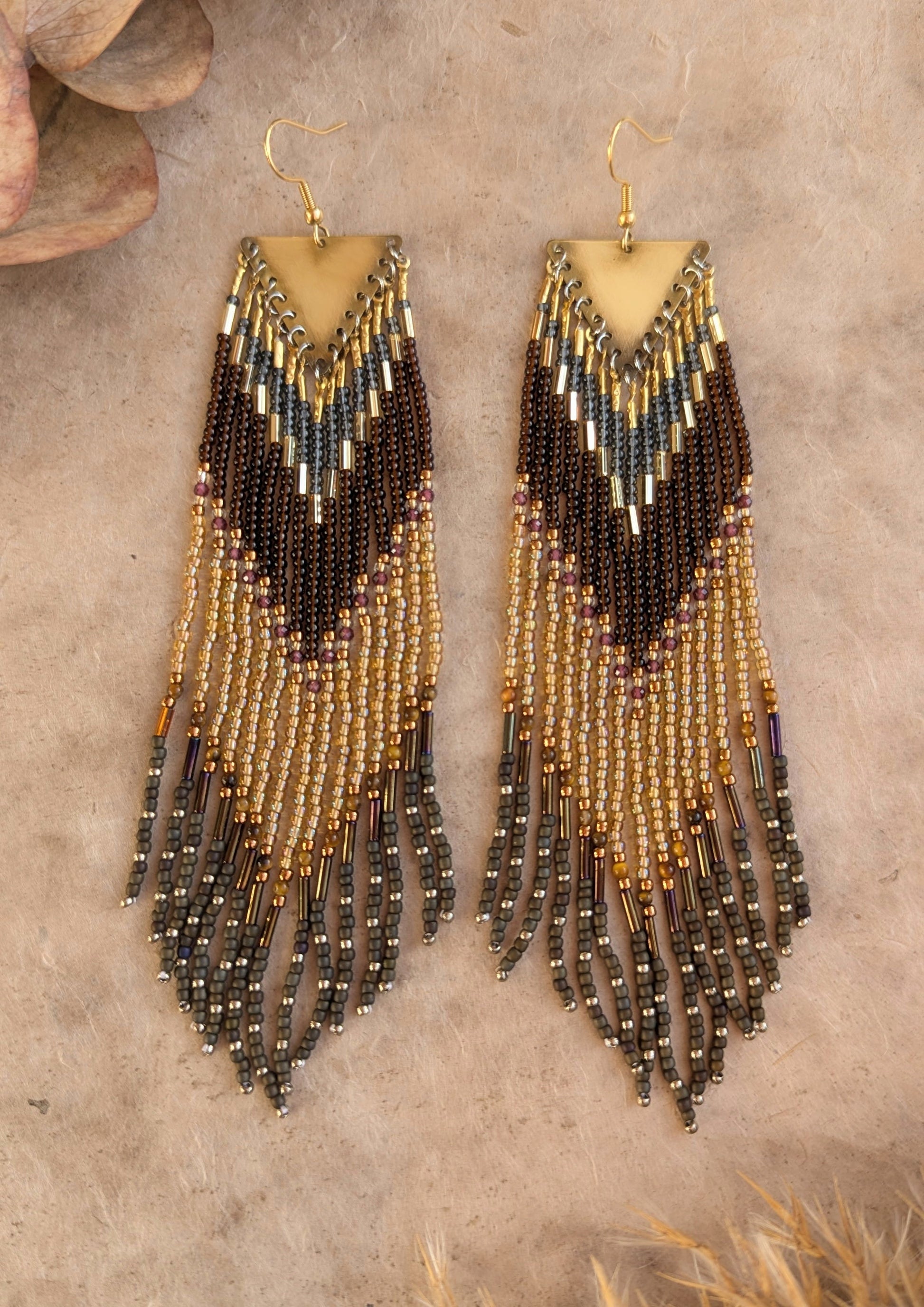 - Handmade seed bead earrings created with antique-finish brass, glass beads, natural stones, and high-quality Japanese nylon thread for ultimate durability.