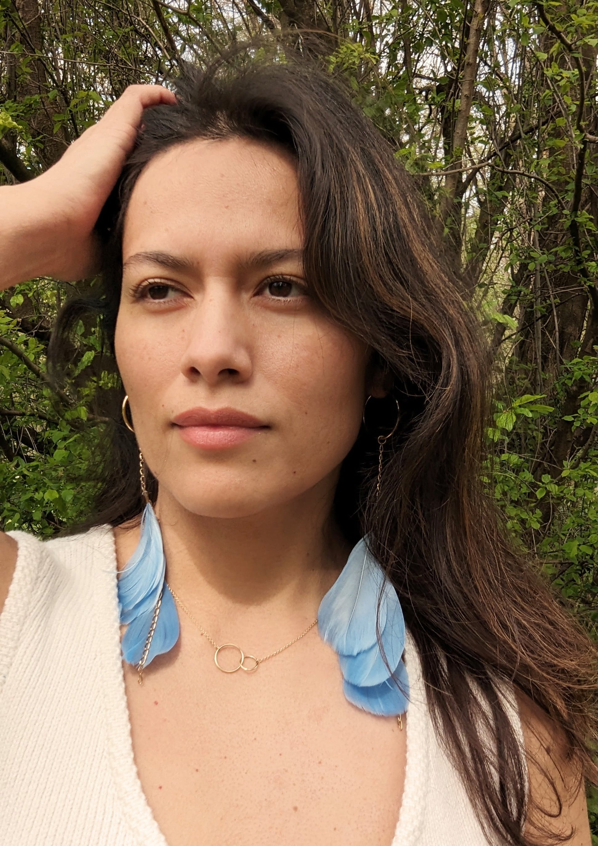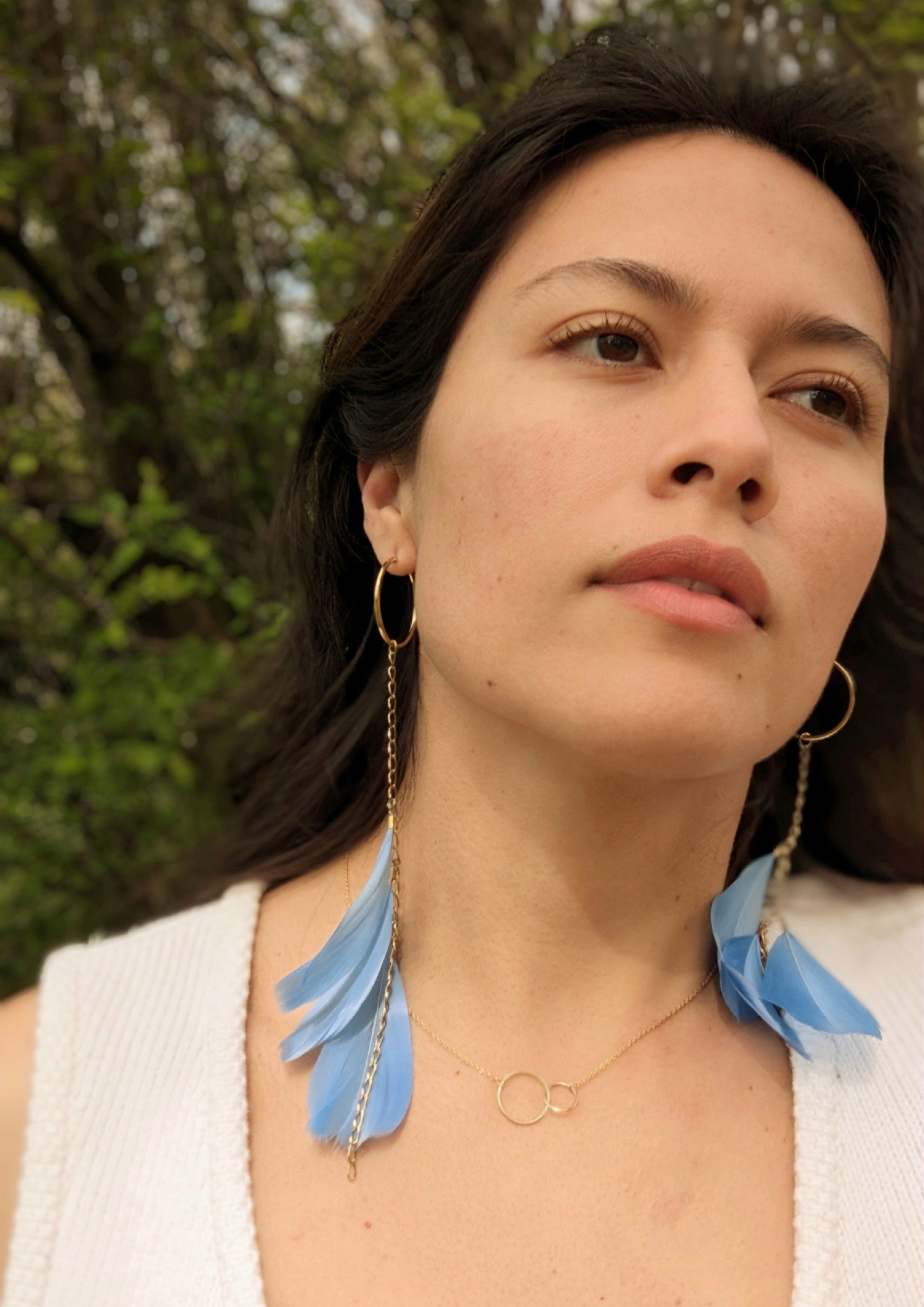 Drift into a dreamy state of elegance with these ethereal feather earrings. Featuring soft, sky-blue feathers cascading from delicate gold hoops, they exude a serene and airy charm. Perfect for the free spirit, they move gracefully, catching whispers of wind and light. Whether you're channeling a bohemian vibe or embracing simplicity, these earrings bring a touch of nature’s tranquility to your ensemble.