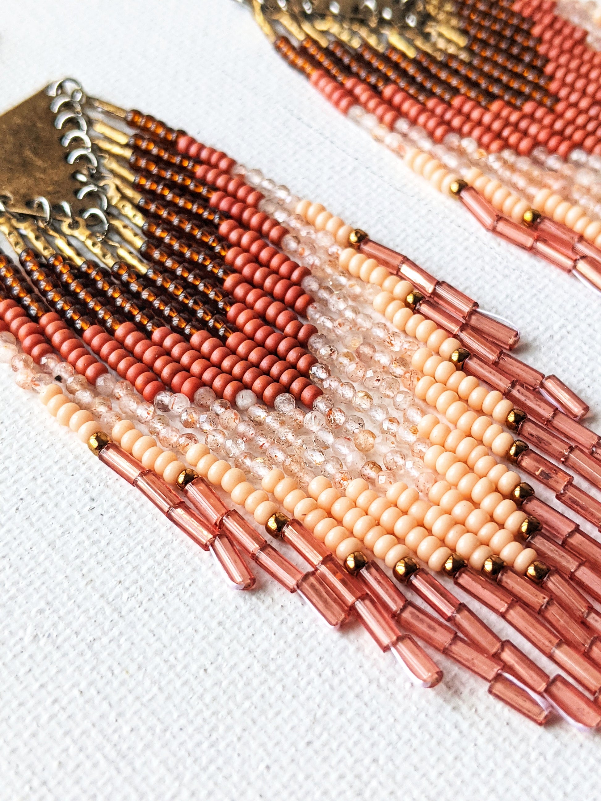 Level up your outfit with these bohemian beaded earrings with pink undertones. These bohemian earrings will help you channel your wild moon woman spirit.
