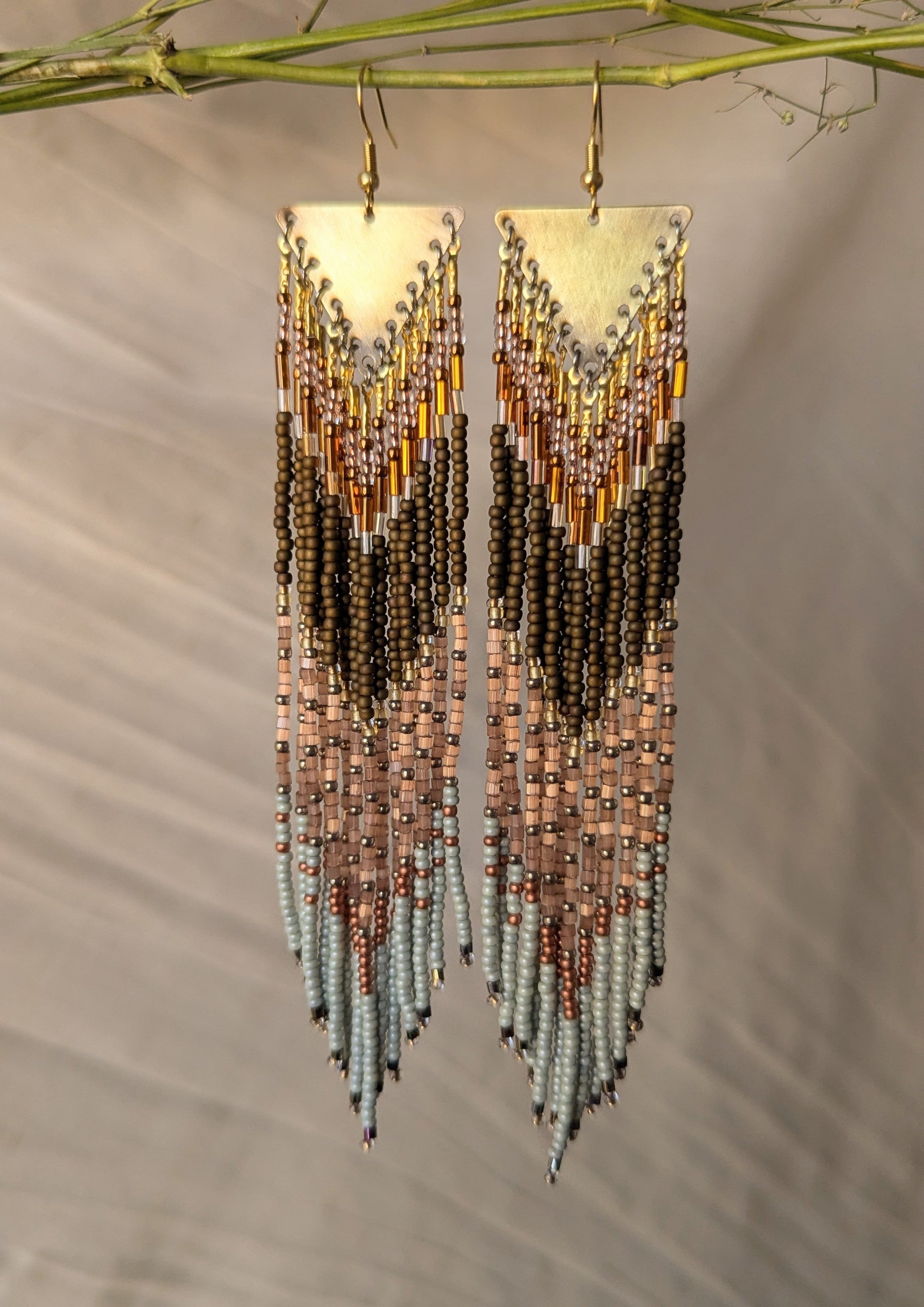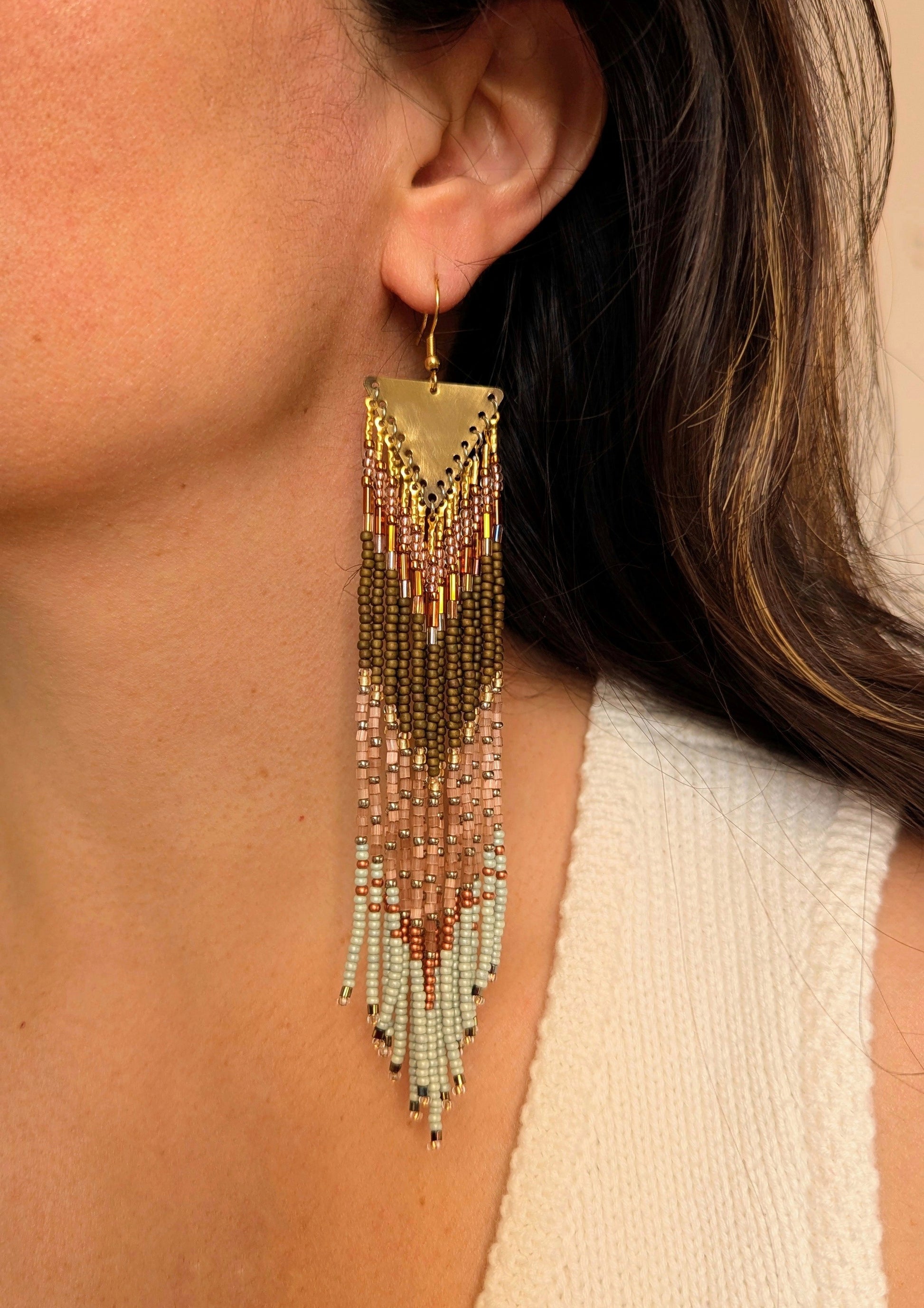- Handmade beaded earrings created with antique-finish brass, glass beads, natural stones, and high-quality Japanese nylon thread for ultimate durability.