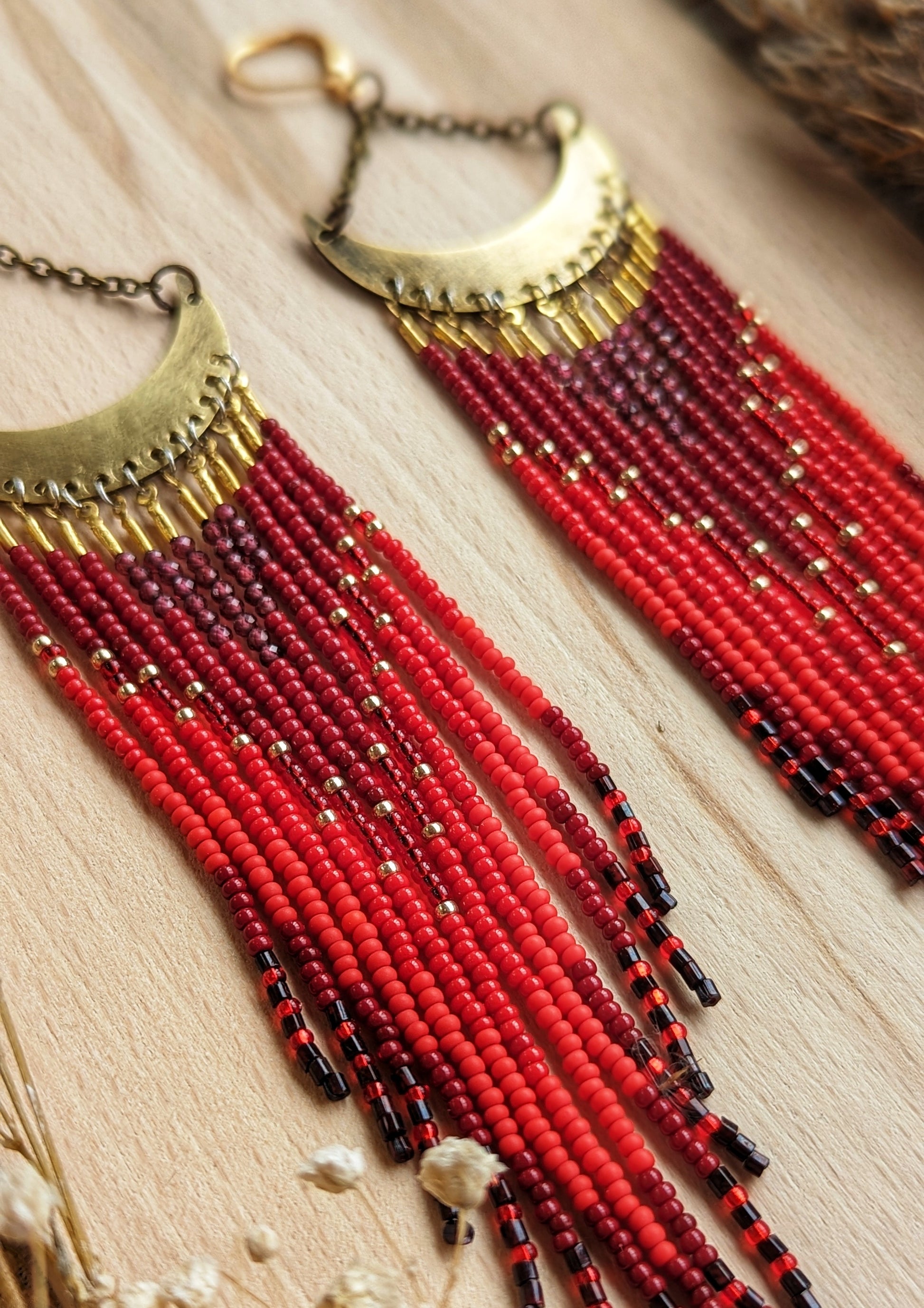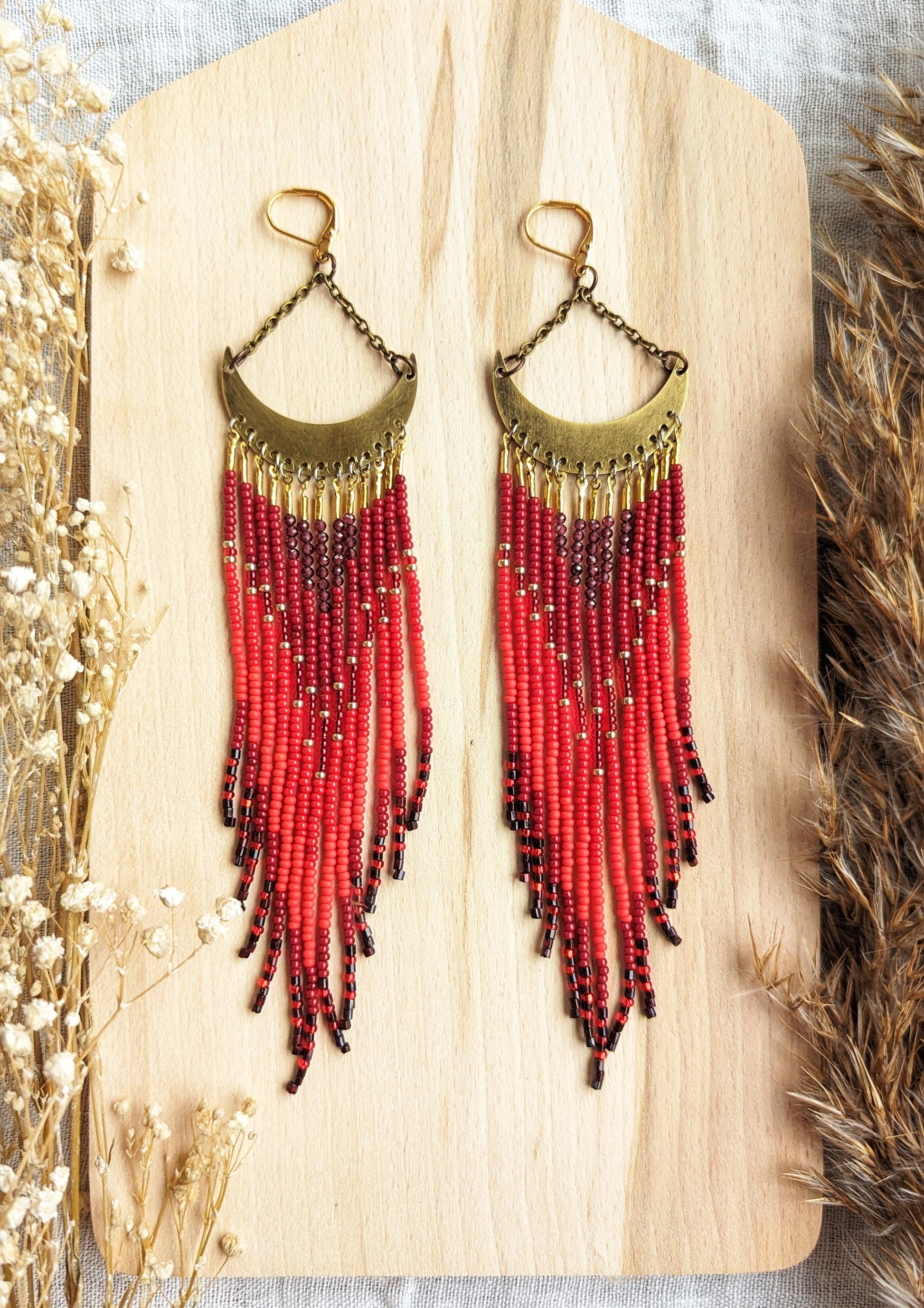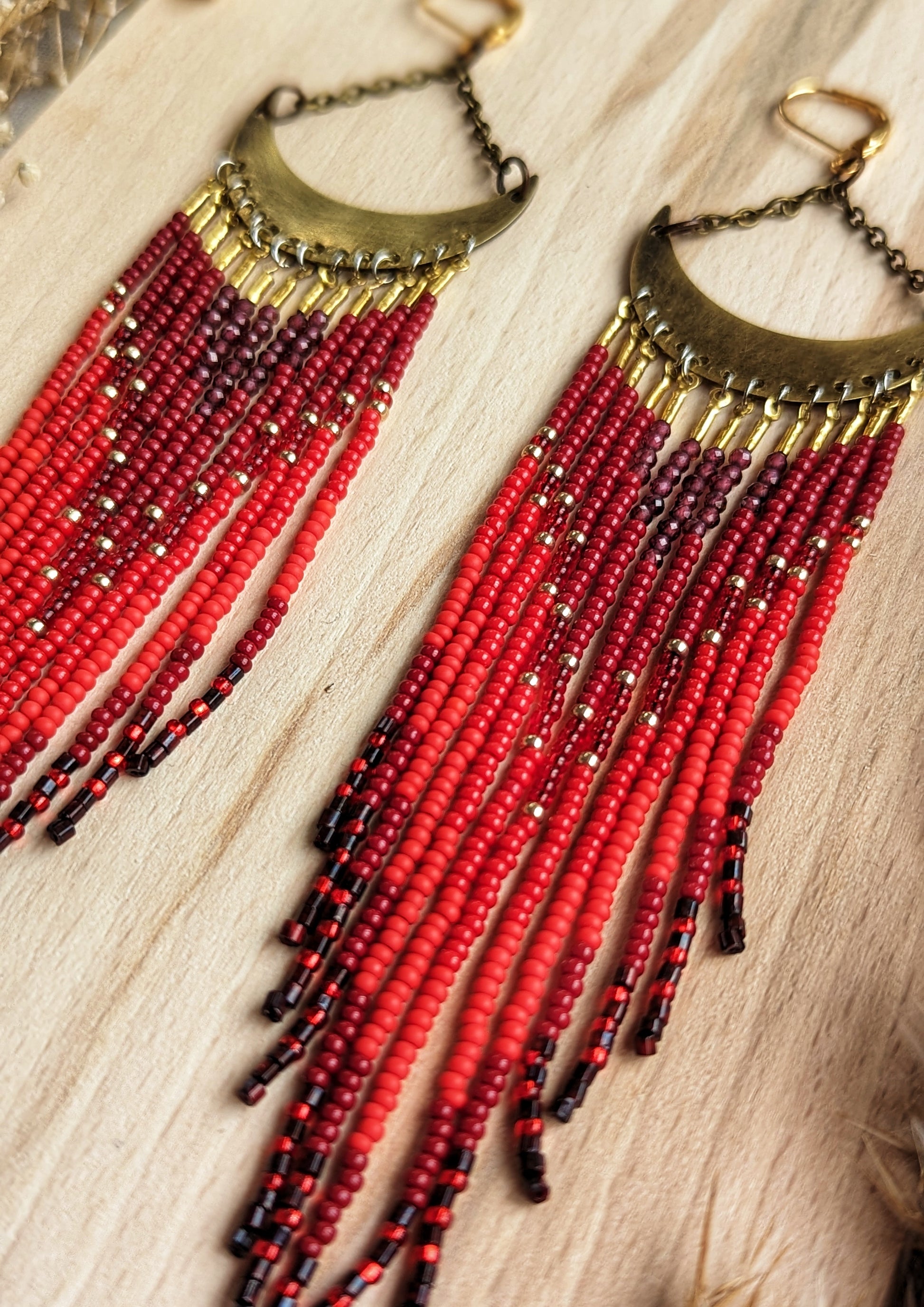 The Jezebel Bloody Moon Earrings feature a delicate moon brass finding that's an exquisite fusion of bold color and celestial charm.