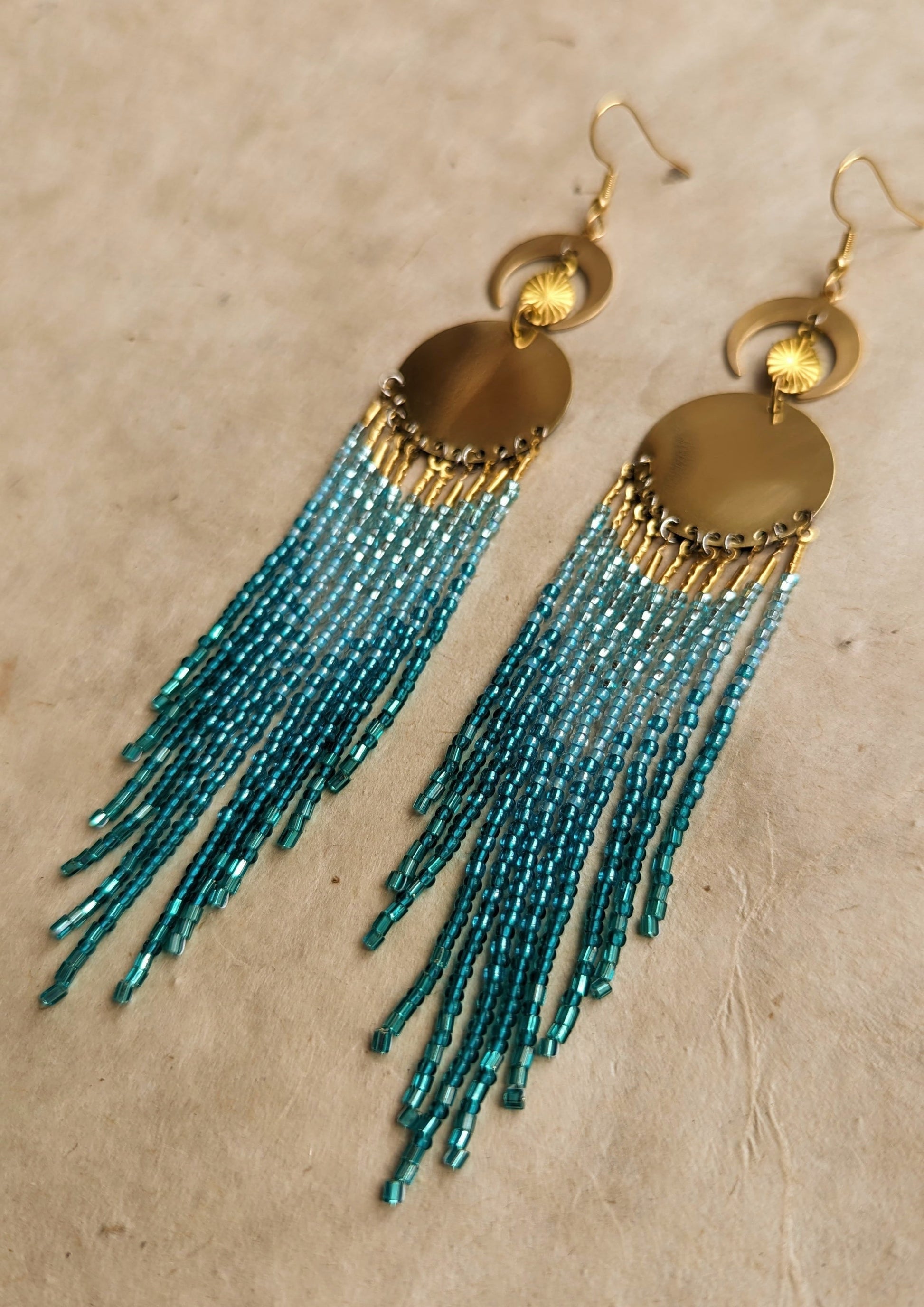 Featuring vibrant aqua turquoise beads that capture the essence of serene waters and delicate beading that reflects the sunlight, these seed bead earrings are reminiscent of the gentle shimmer of a Mermaid's Tears. Lightweight and comfortable, whether you're longing for a piece of peaceful sea ambiance or seeking a unique, handcrafted accessory, this crescent moon pair is a breathtaking choice.
