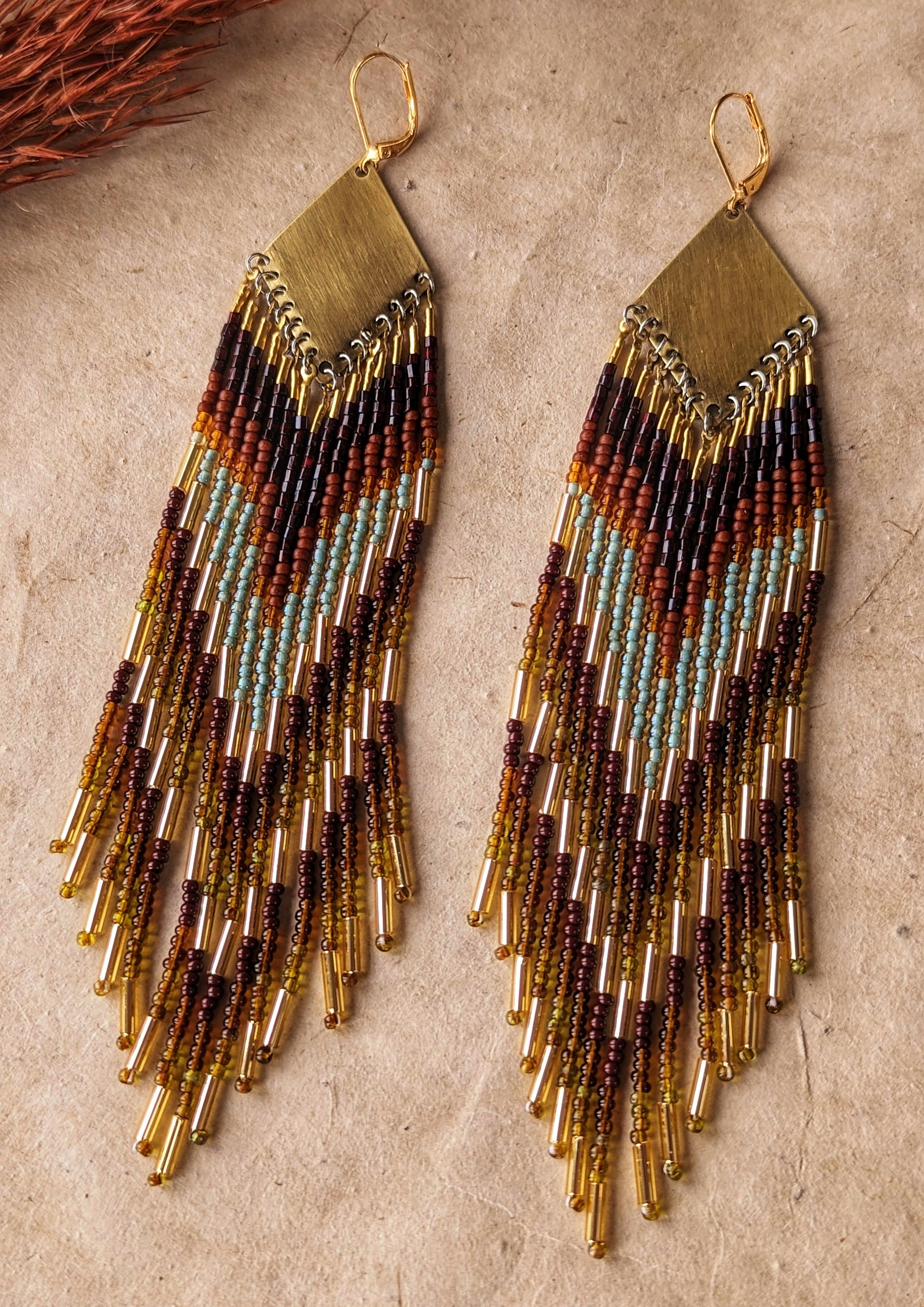 - Handmade green ombre beaded earrings created with brass and glass beads.