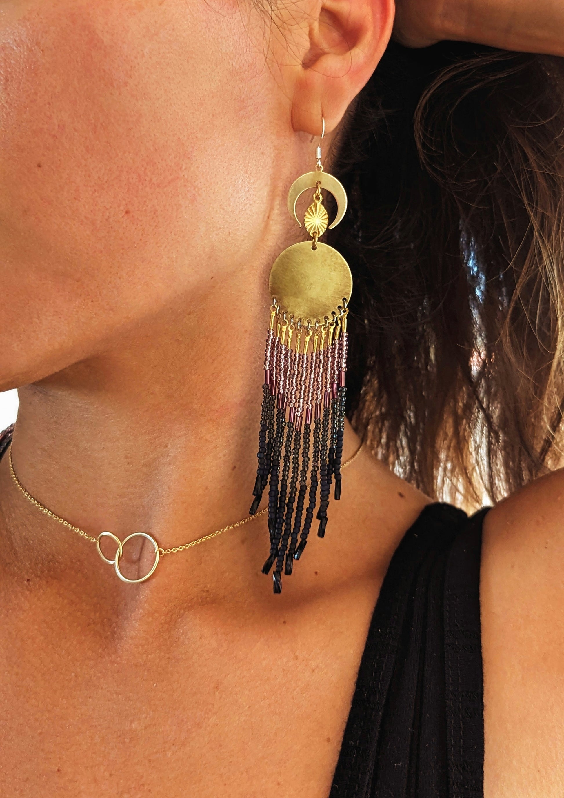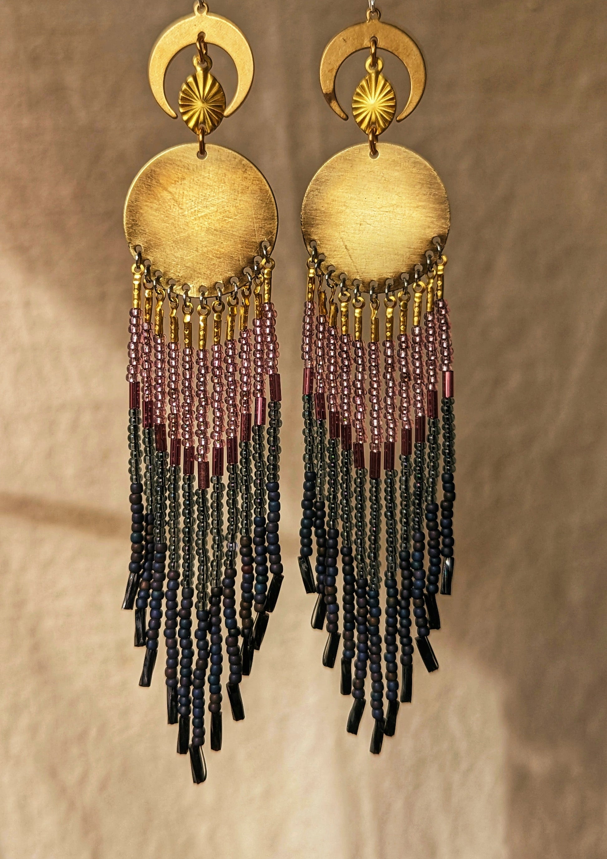 Step into the world of mysticism and ancient civilizations with the Luna en Tenochtitlan Seed Bead Earrings. The gradient of purples captures the essence of Aztec heritage and the supernatural, making these earrings a perfect blend of magic and tradition.