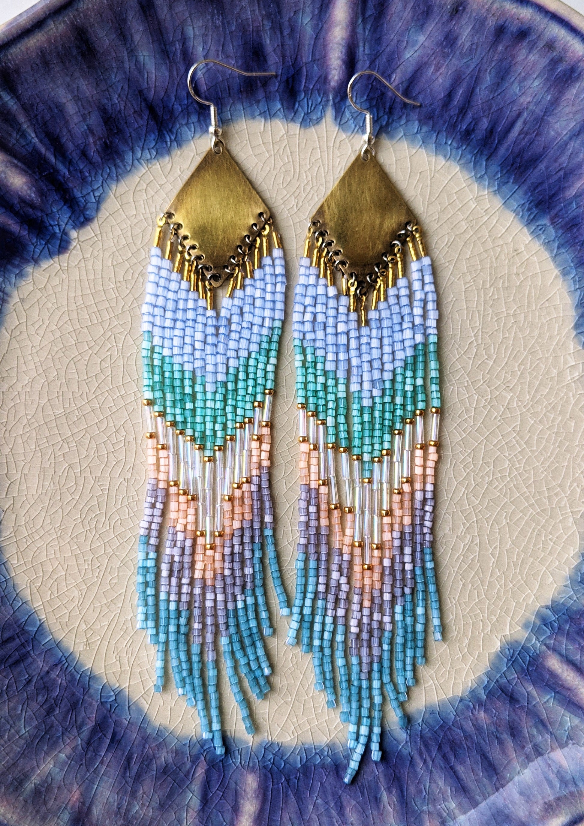 Handcrafted with meticulous detail, these artisan earrings combine brass jewelry with intricate native beadwork in a design that feels both serene and alive.