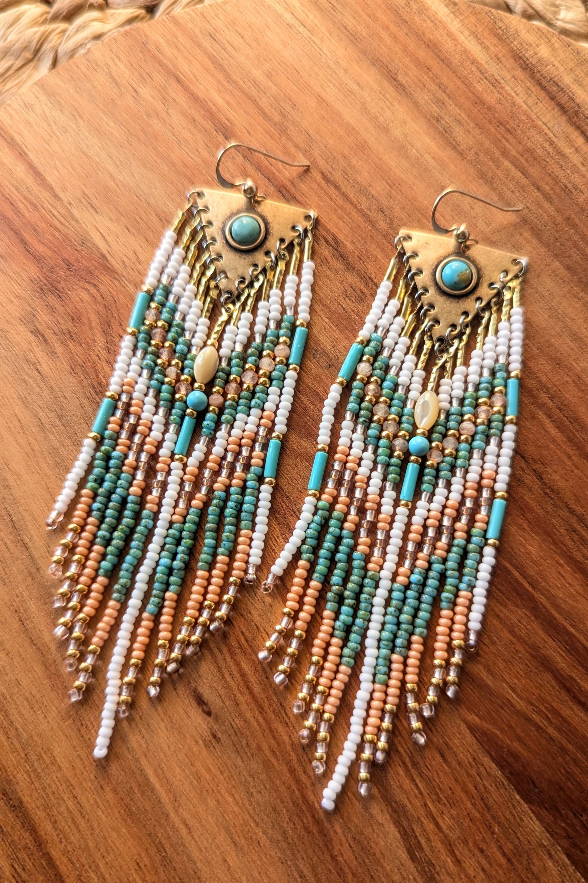 Handcrafted with care, these artisan earrings bring together brass jewelry, long native style, and intricate beadwork — wearable art that feels the warmth of dawn.