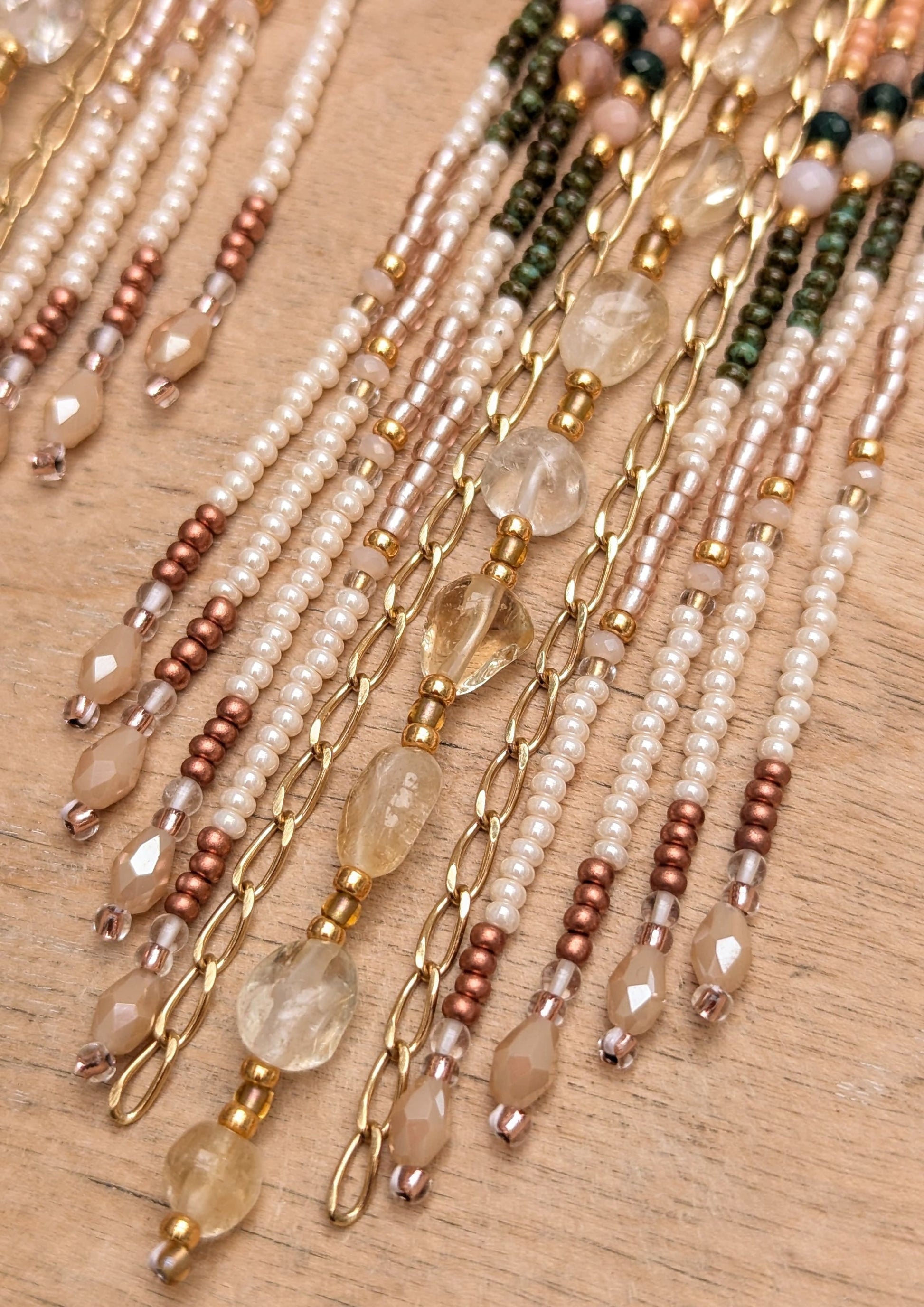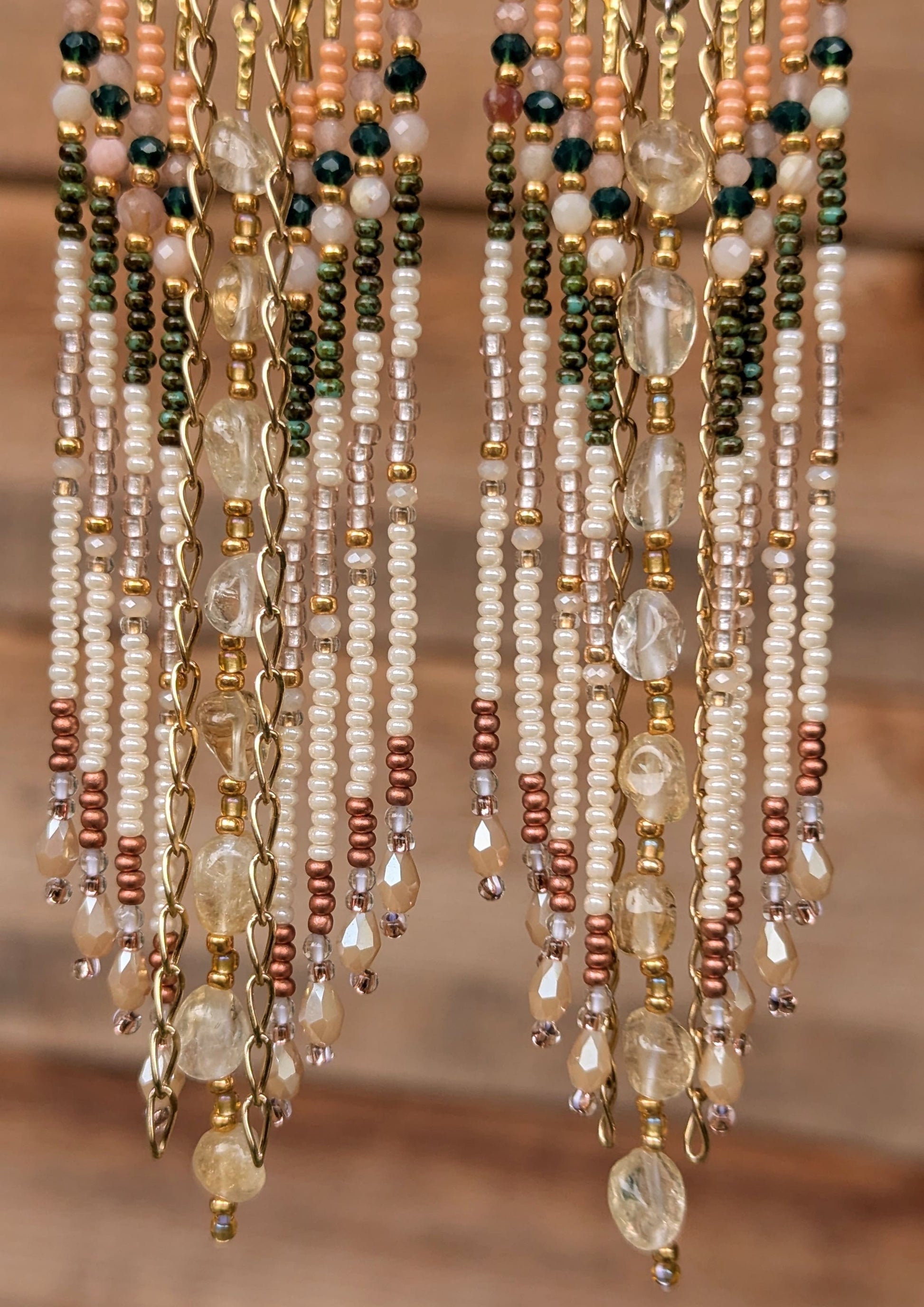 - Natural Stones: Citrine, Peruvian opal, sandstone, peach moonstone, crystal quartz