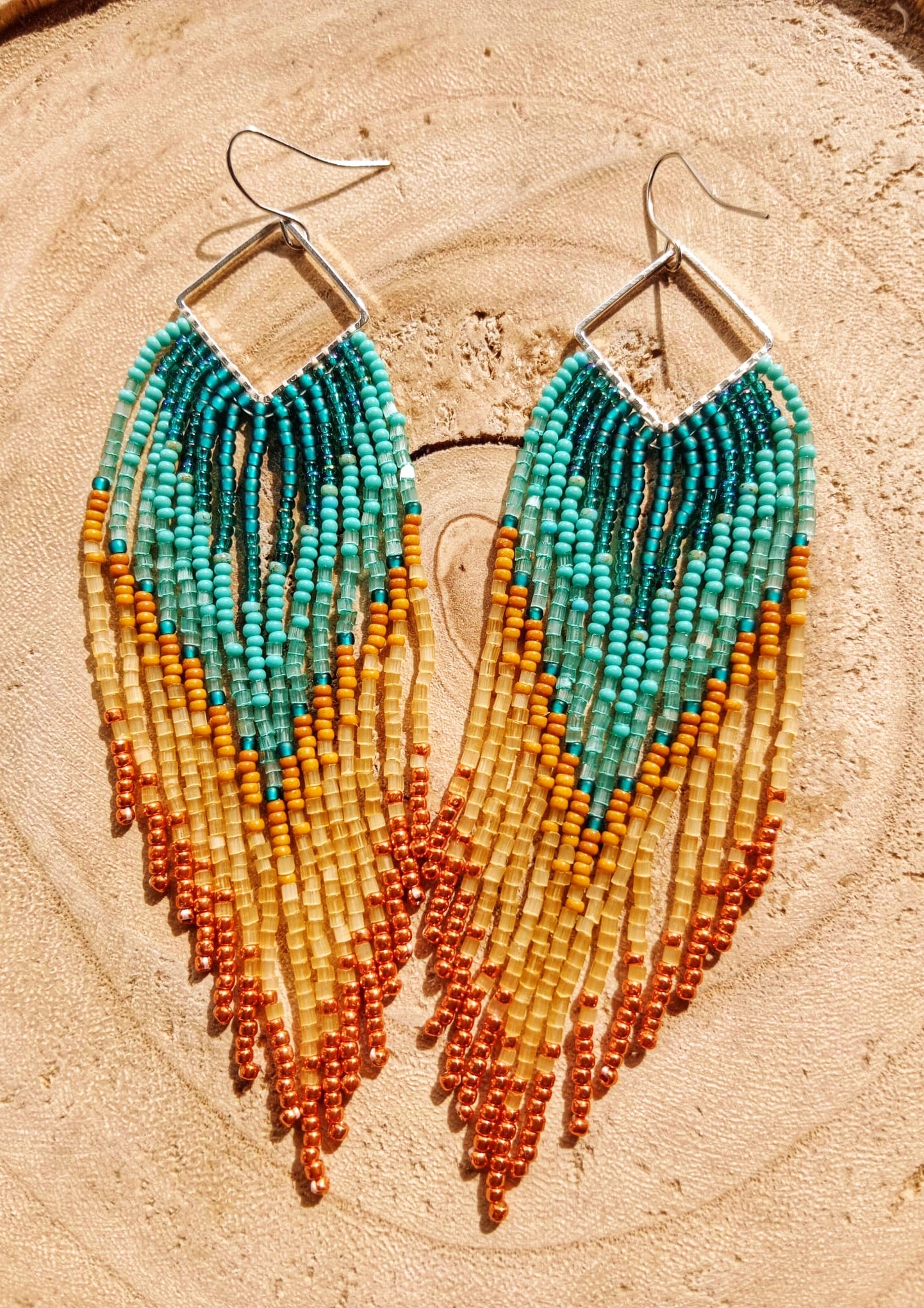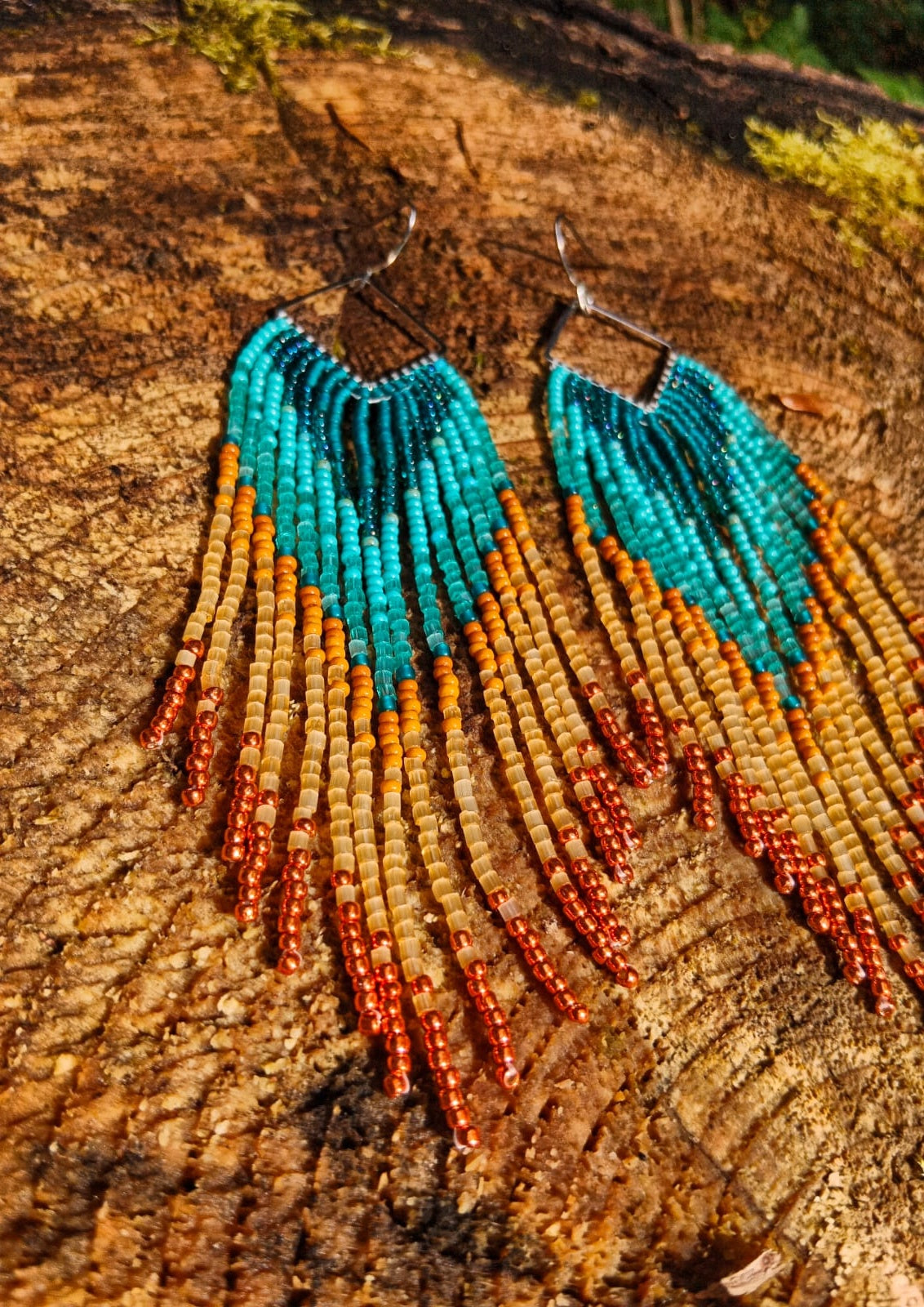 Experience the magic of a Utah canyon sunset with our Zion Sunset Seed Bead Earrings. The combination of rich orange and serene turquoise reflects the vibrant colors that paint the sky as the sun dips below the horizon. Skillfully handwoven, these earrings exude freedom and authenticity, making them a perfect accessory for those who appreciate nature's beauty and artistic craftsmanship.